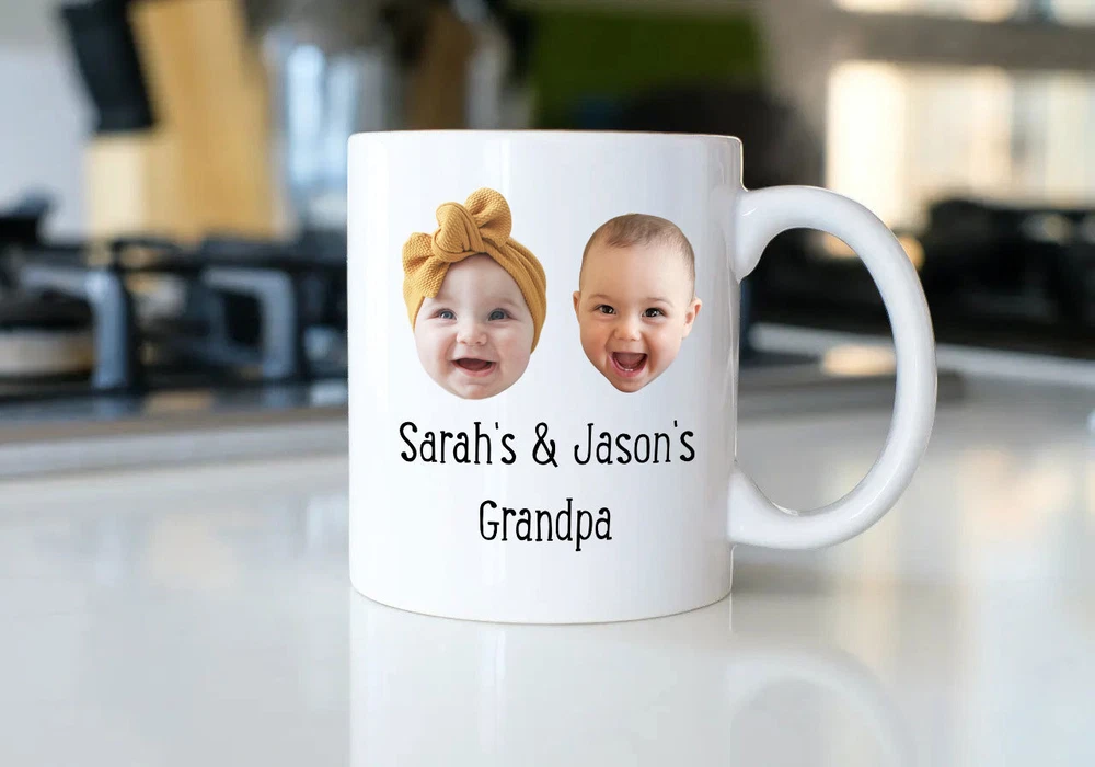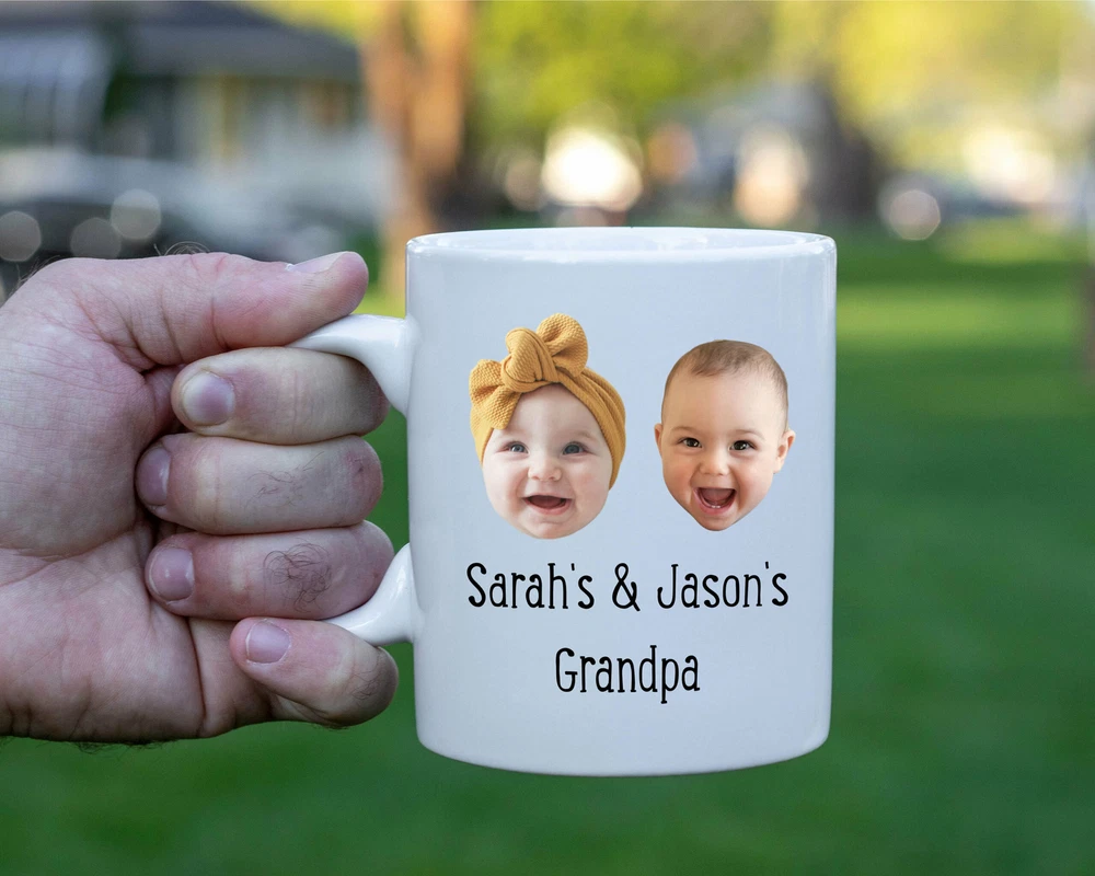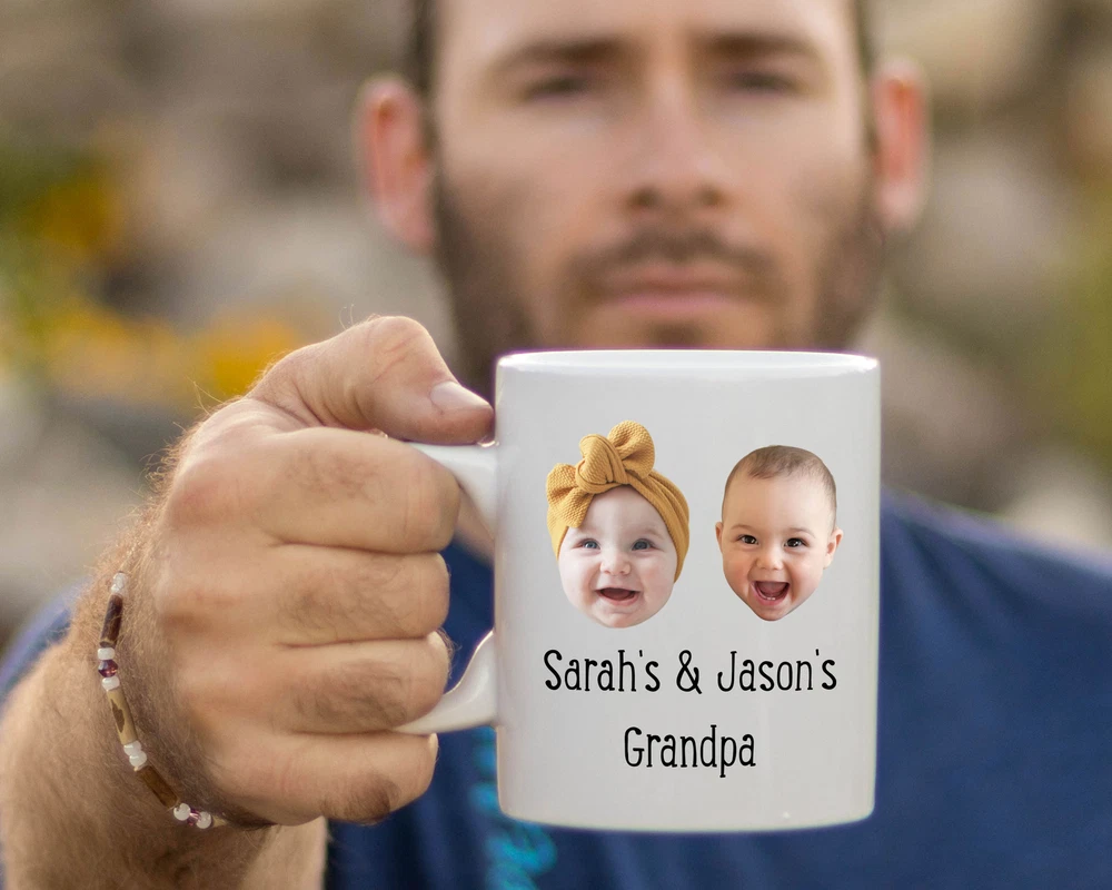 Personalized Gift For Grandpa Custom Grandpa Mug Grandkid Face Mug Baby Photo Product Details.. This high quality 11oz. ceramic white mug has a premium hard coat that provides crisp and vibrant color reproduction sure to last for years. Perfect for all hot & cold beverages. The highest quality printing possible is used. It will never fade no matter how many times you wash it. Material: 100% Ceramic. Print both sides. Dishwasher and Microwave Safe. High Gloss + Premium White Finish. Printed in the U.S.A. Personalized & Custom. We support personalized and custom mug to add custom, when placing an order, you can add notes to the "order note" in shipping address section. Also you can contact us directly via message. Shipping Info. Ready to ship in 1 to 2 business days, All products are made-to-order and proudly printed in the United States. Shipped by USPS and DHL, You will receive your order in 5-7 days. Replace & Refund. All products are defective during shipping broken, chipped will be replaced free of charge. You are not satisfied with the product, we will refund 100% money to you. If any other issues arise, please do not hesitate to message, we would be more than happy to assist you.
