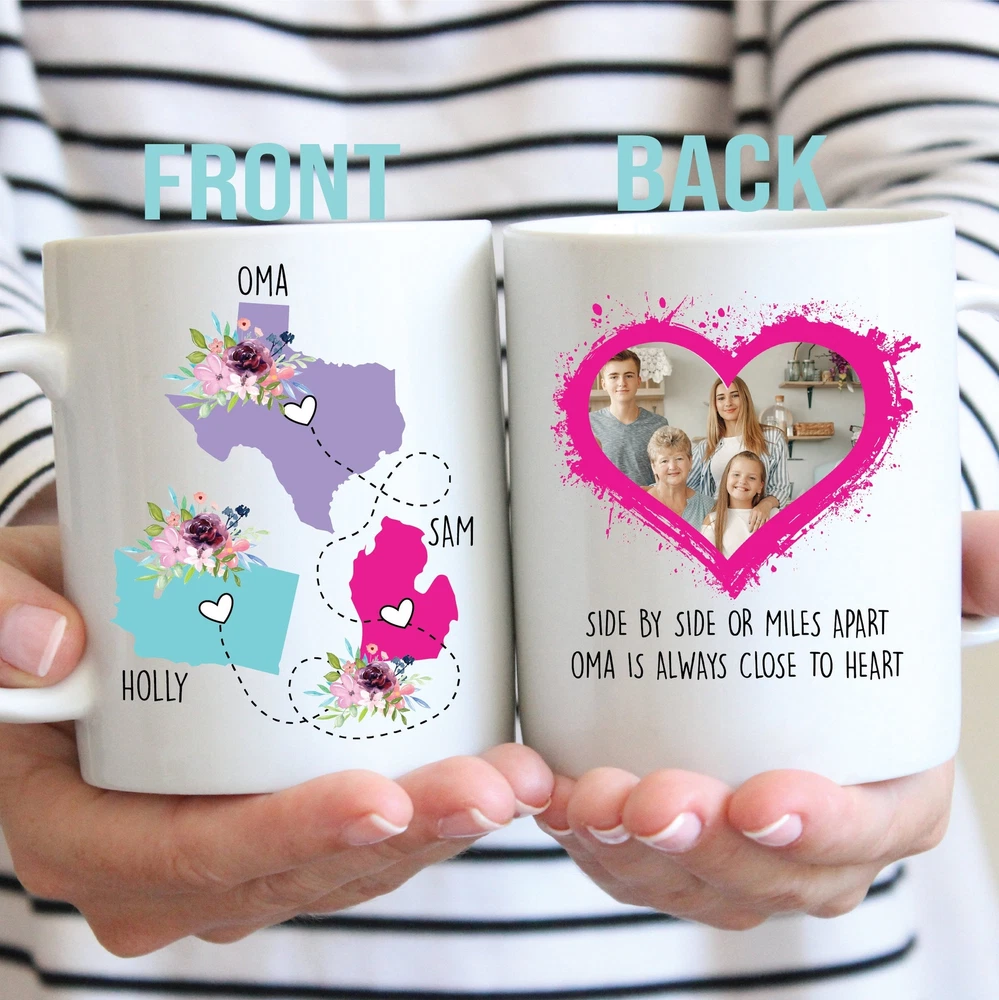 Personalized Gift For Oma Oma Forever Never Apart State To State Mug Long Product Details.. This high quality 11oz. ceramic white mug has a premium hard coat that provides crisp and vibrant color reproduction sure to last for years. Perfect for all hot & cold beverages. The highest quality printing possible is used. It will never fade no matter how many times you wash it. Material: 100% Ceramic. Print both sides. Dishwasher and Microwave Safe. High Gloss + Premium White Finish. Printed in the U.S.A. Personalized & Custom. We support personalized and custom mug to add custom, when placing an order, you can add notes to the "order note" in shipping address section. Also you can contact us directly via message. Shipping Info. Ready to ship in 1 to 2 business days, All products are made-to-order and proudly printed in the United States. Shipped by USPS and DHL, You will receive your order in 5-7 days. Replace & Refund. All products are defective during shipping broken, chipped will be replaced free of charge. You are not satisfied with the product, we will refund 100% money to you. If any other issues arise, please do not hesitate to message, we would be more than happy to assist you.