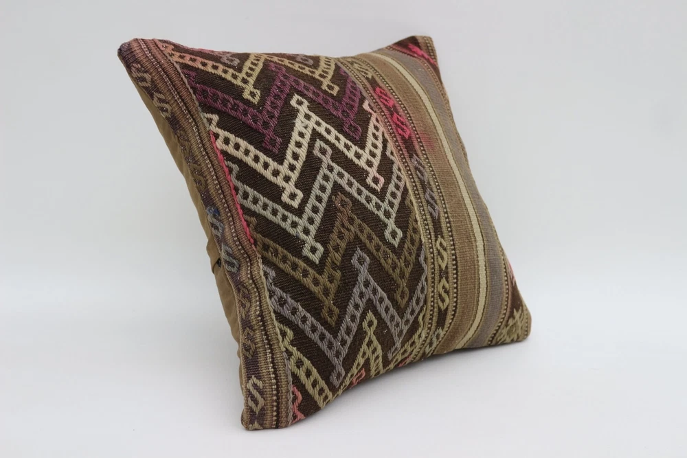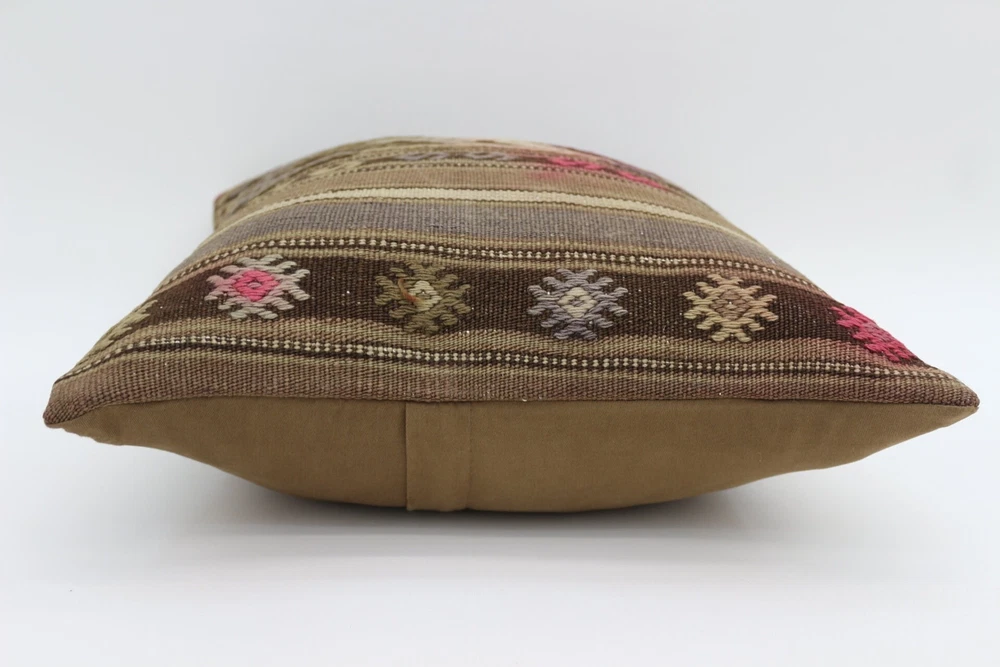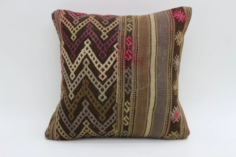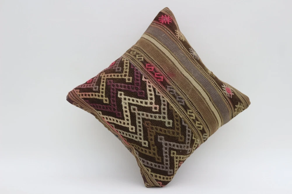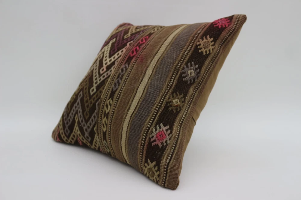 Personalized Gift, Kilim Pillow Cover, Pillow Cover, 16"x16" Brown Kilim Pillow