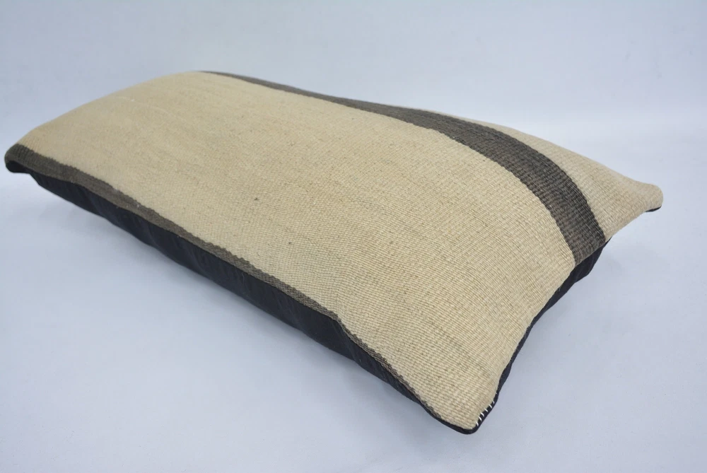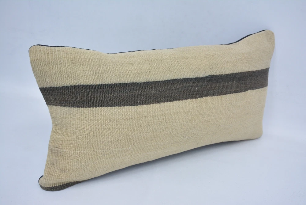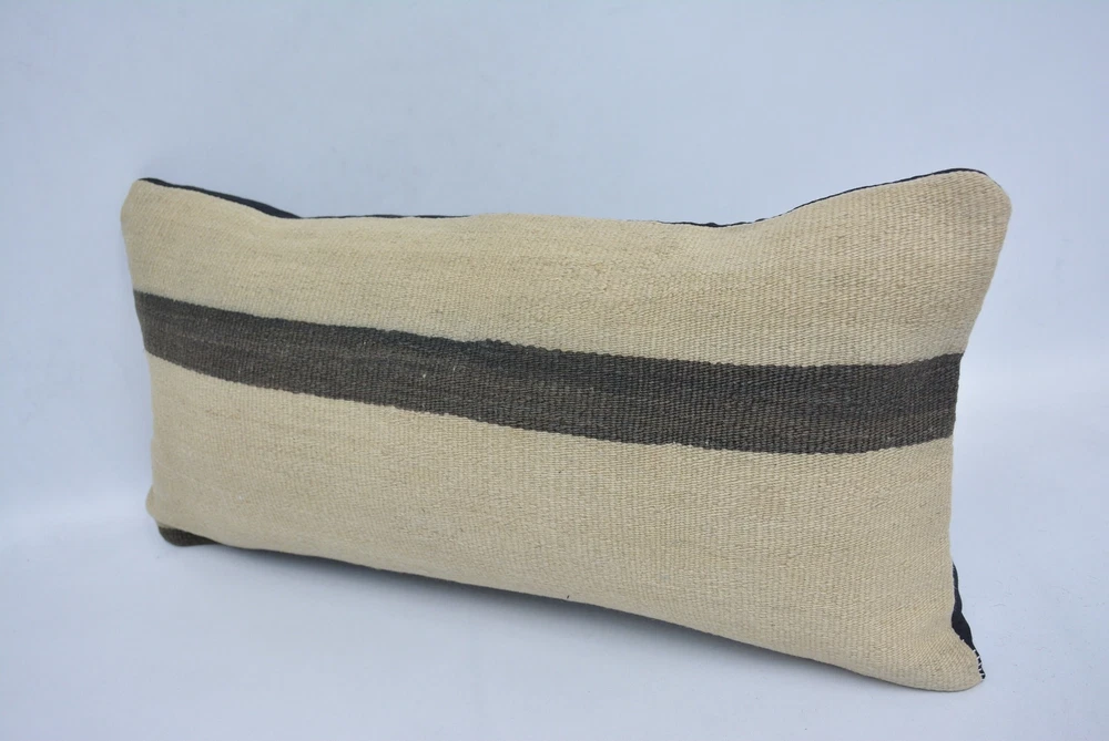 Personalized Gift, Turkish Kilim Pillow, 12"x24" Beige Kilim Pillow
