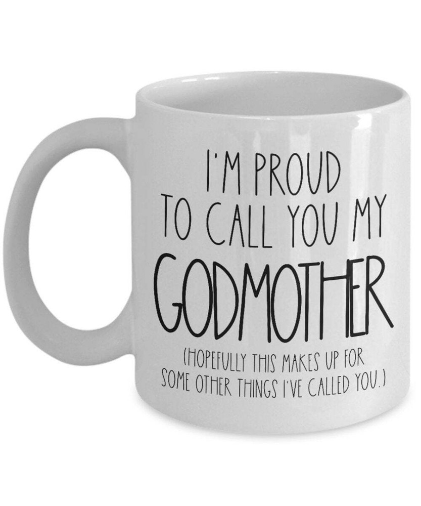 Godmother Gift For Godmother Godmother Christmas Gift Godmother Birthday Gift Product Details.. This high quality 11oz. ceramic white mug has a premium hard coat that provides crisp and vibrant color reproduction sure to last for years. Perfect for all hot & cold beverages. The highest quality printing possible is used. It will never fade no matter how many times you wash it. Material: 100% Ceramic. Print both sides. Dishwasher and Microwave Safe. High Gloss + Premium White Finish. Printed in the U.S.A. Personalized & Custom. We support personalized and custom mug to add custom, when placing an order, you can add notes to the "order note" in shipping address section. Also you can contact us directly via message. Shipping Info. Ready to ship in 1 to 2 business days, All products are made-to-order and proudly printed in the United States. Shipped by USPS and DHL, You will receive your order in 5-7 days. Replace & Refund. All products are defective during shipping broken, chipped will be replaced free of charge. You are not satisfied with the product, we will refund 100% money to you. If any other issues arise, please do not hesitate to message, we would be more than happy to assist you.
