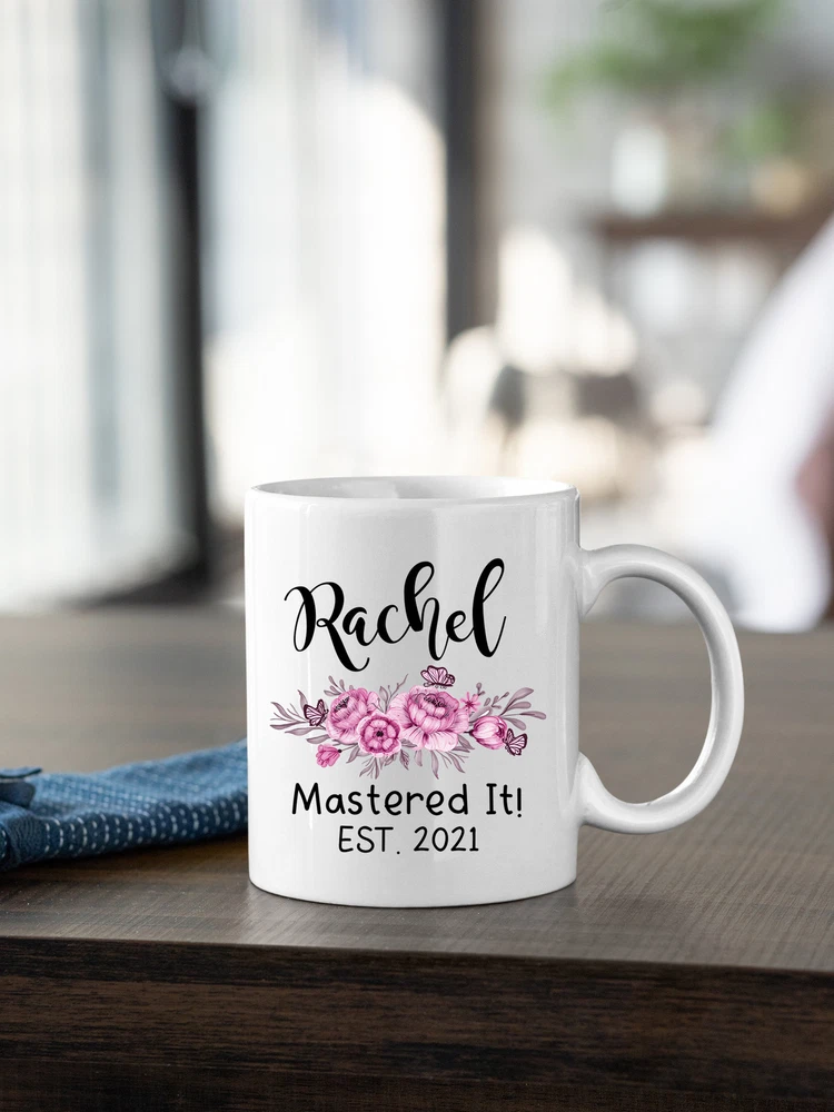 Personalized Graduation Mug Masters Degree Personalized Graduation Gift Gift Mba Product Details.. This high quality 11oz. ceramic white mug has a premium hard coat that provides crisp and vibrant color reproduction sure to last for years. Perfect for all hot & cold beverages. The highest quality printing possible is used. It will never fade no matter how many times you wash it. Material: 100% Ceramic. Print both sides. Dishwasher and Microwave Safe. High Gloss + Premium White Finish. Printed in the U.S.A. Personalized & Custom. We support personalized and custom mug to add custom, when placing an order, you can add notes to the "order note" in shipping address section. Also you can contact us directly via message. Shipping Info. Ready to ship in 1 to 2 business days, All products are made-to-order and proudly printed in the United States. Shipped by USPS and DHL, You will receive your order in 5-7 days. Replace & Refund. All products are defective during shipping broken, chipped will be replaced free of charge. You are not satisfied with the product, we will refund 100% money to you. If any other issues arise, please do not hesitate to message, we would be more than happy to assist you.