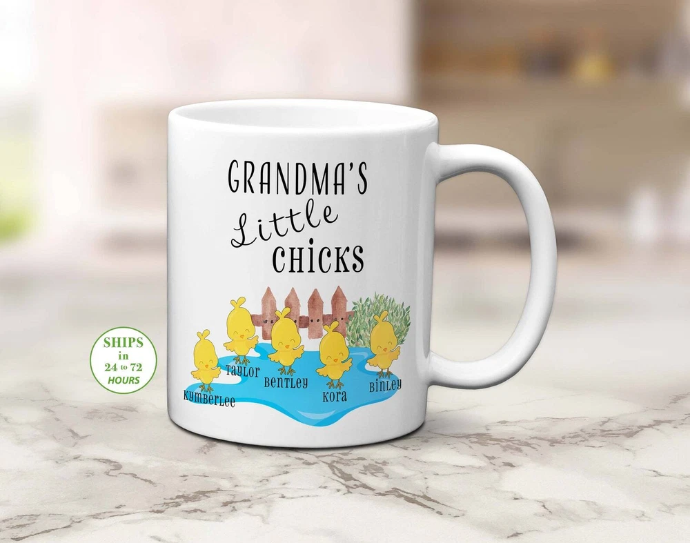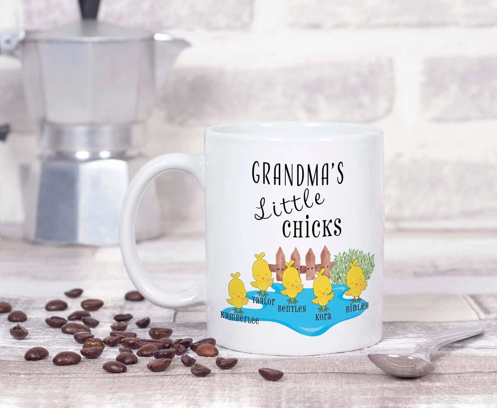Personalized Grandma Mug Chick Mug Grandma Custom Gift Product Details.. This high quality 11oz. ceramic white mug has a premium hard coat that provides crisp and vibrant color reproduction sure to last for years. Perfect for all hot & cold beverages. The highest quality printing possible is used. It will never fade no matter how many times you wash it. Material: 100% Ceramic. Print both sides. Dishwasher and Microwave Safe. High Gloss + Premium White Finish. Printed in the U.S.A. Personalized & Custom. We support personalized and custom mug to add custom, when placing an order, you can add notes to the "order note" in shipping address section. Also you can contact us directly via message. Shipping Info. Ready to ship in 1 to 2 business days, All products are made-to-order and proudly printed in the United States. Shipped by USPS and DHL, You will receive your order in 5-7 days. Replace & Refund. All products are defective during shipping broken, chipped will be replaced free of charge. You are not satisfied with the product, we will refund 100% money to you. If any other issues arise, please do not hesitate to message, we would be more than happy to assist you.