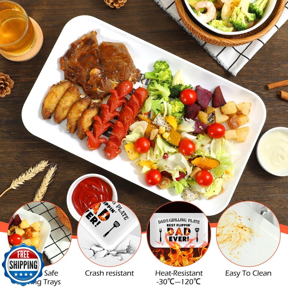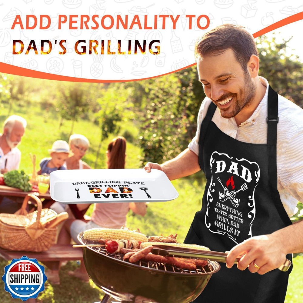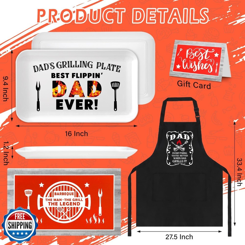 Fathers Day Dad Gifts from Daughter Son, Personalized Grilling Platter and Apron Set Birthday Gifts for Dad Papa Bonus Step Father in Law, Cool Grill BBQ Serving Tray Gift for Daddy Father's Day Features Funny Father's Day Gifts for Dad: The dad grilling set printed with the text “DAD’S GRILLING PLATE " and interesting patterns on plate and apron. Durable and fade-proof, it is a must-have for every father who loves barbecue. Every detail of workmanship is filled with respect and love for fathers, making this dad gift even more special. High-Quality Materials: Crafted from food-grade level melamine, the dad gifts platter set is designed for grilling and holding delicious meats and veggies. Unlike ceramic platters , it's lightweight and durable. Won't break, crack or chip easily. It can withstand temperatures up to 120°C (248°F) and as low as -30°C (-80°F). Clean it with a damp cloth, soap or dishwasher can make it look brand new. WARNING: No Microwave or Oven. Extra Large Meets Your Needs: 16 x 9.4 x 1.2 inch dad grilling platter gifts are wide enough to hold a variety of food, ideal for serving turkey, snacks, sushi, fruits, fish, appetizers, sandwiches and chips, salad, dessert. Our dad gifts grilling plate set also comes with an adjustable cooking apron that fits dads of all body types perfectly. The fun pattern on the apron matches dad's plate, adding a touch of fun to the party and brightening up the kitchen. Versatile Dad's Plates: The plates are perfect for various occasions like kitchen, home use, family gatherings, BBQ, outdoor parties, as well as picnics, camping, travel trailers and campers. Our dad gift from daughter and son set is not just a practical utensil but also a lovely decoration for your home, making it a wonderful gift and keepsake. Best Grill Grilling Gifts for Dad: This funny grilling gift for dad includes 1 x Dad Grilling Plate, 1x Apron, 1x Gift Box, 1 x Gift Card. Great gift choice to surprise your father on Christmas Day, Birthday Day, Thanksgiving Day, Father's Day, New Year, or any other occasion. As a personalized and unique present, it is a great way to express love and appreciation for dad and give him fun and unforgettable memories! Shipping Free & Fast Shipping: We offer free shipping to most of the USA with a normal delivery time of 3-7 days. However, due to the current situation, additional delivery time (up to 3 weeks) may be required for some items. Alternative Carriers: We may use alternative carriers (e.g., USPS, FedEx, UPS) to ensure your package arrives safely and on time. Due to the use of multiple carriers, we are unable to provide a tracking number automatically. Handling Time: Orders are processed and shipped within 1-2 business days of receiving cleared payment. Shipping Restrictions: Shipping to Alaska, Hawaii, Puerto Rico, Guam, and other US territories may incur shipping charges or delivery restrictions. Please contact us before ordering, or your order can be refunded/cancelled. State Restrictions: Certain items may not be shipped to California due to state regulations. Contact for Tracking Updates: If you require tracking updates or have any concerns about the delivery of your order, please feel free to contact us, and we will be happy to assist you. Return Policy 30-Day Hassle-Free Returns: If you are not completely satisfied with your purchase, you can return the item for free within 30 days of receiving it for a full refund or exchange. Easy Return Process: Contact us, and we will provide you with a prepaid return shipping label and detailed instructions. No Restocking Fee: There are no restocking fees for returns. However, the buyer is responsible for return shipping costs if the return is not due to a seller"s error. Refund Processing: Refunds will be processed within 1 business day of receiving the returned item in its original condition. Feedback Your feedback is extremely important to us. We strive to provide the best products and customer service possible. If you are satisfied with your purchase, please take a moment to leave us a positive review. If you have any concerns or issues with your order, please contact us before leaving negative feedback. We are committed to resolving any problems and ensuring your satisfaction. Contact Us If you have any questions or concerns, please feel free to reach out to our customer support team. You can contact us through the eBay messaging system. We are available Monday to Friday, 9:00 am to 5:00 pm EST, and we will do our best to respond to your inquiry within 24 hours. Thank you for supporting our small family business!