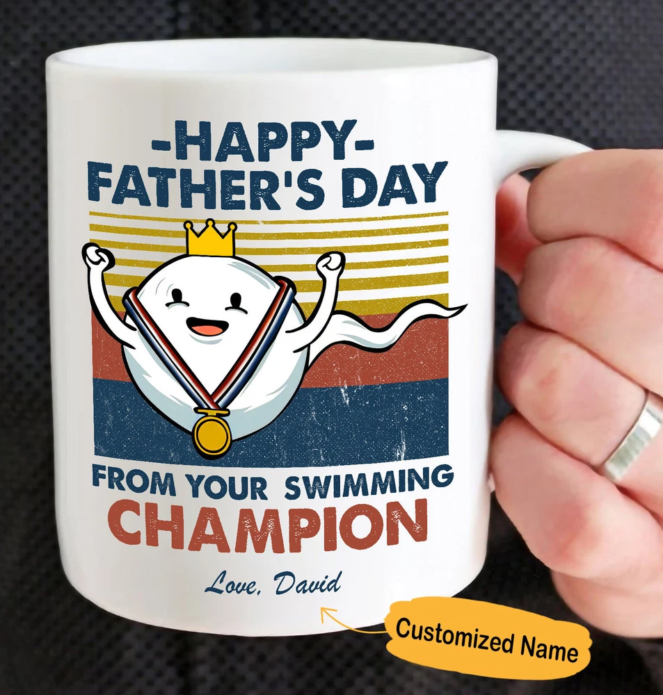 Personalized Happy Fathers Day From Swimming Champion Mug Retro Vintage Mug Product Details.. This high quality 11oz. ceramic white mug has a premium hard coat that provides crisp and vibrant color reproduction sure to last for years. Perfect for all hot & cold beverages. The highest quality printing possible is used. It will never fade no matter how many times you wash it. Material: 100% Ceramic. Print both sides. Dishwasher and Microwave Safe. High Gloss + Premium White Finish. Printed in the U.S.A. Personalized & Custom. We support personalized and custom mug to add custom, when placing an order, you can add notes to the "order note" in shipping address section. Also you can contact us directly via message. Shipping Info. Ready to ship in 1 to 2 business days, All products are made-to-order and proudly printed in the United States. Shipped by USPS and DHL, You will receive your order in 5-7 days. Replace & Refund. All products are defective during shipping broken, chipped will be replaced free of charge. You are not satisfied with the product, we will refund 100% money to you. If any other issues arise, please do not hesitate to message, we would be more than happy to assist you.