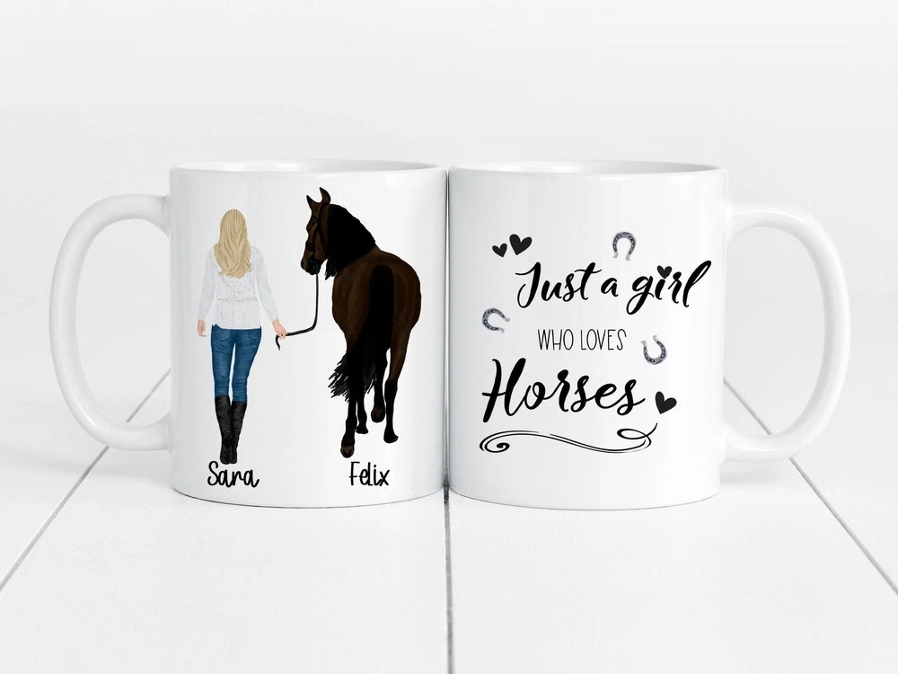 Personalized Horse Mug Personalized Gift For Her Custom Horse Mug Girlfriend Product Details.. This high quality 11oz. ceramic white mug has a premium hard coat that provides crisp and vibrant color reproduction sure to last for years. Perfect for all hot & cold beverages. The highest quality printing possible is used. It will never fade no matter how many times you wash it. Material: 100% Ceramic. Print both sides. Dishwasher and Microwave Safe. High Gloss + Premium White Finish. Printed in the U.S.A. Personalized & Custom. We support personalized and custom mug to add custom, when placing an order, you can add notes to the "order note" in shipping address section. Also you can contact us directly via message. Shipping Info. Ready to ship in 1 to 2 business days, All products are made-to-order and proudly printed in the United States. Shipped by USPS and DHL, You will receive your order in 5-7 days. Replace & Refund. All products are defective during shipping broken, chipped will be replaced free of charge. You are not satisfied with the product, we will refund 100% money to you. If any other issues arise, please do not hesitate to message, we would be more than happy to assist you.