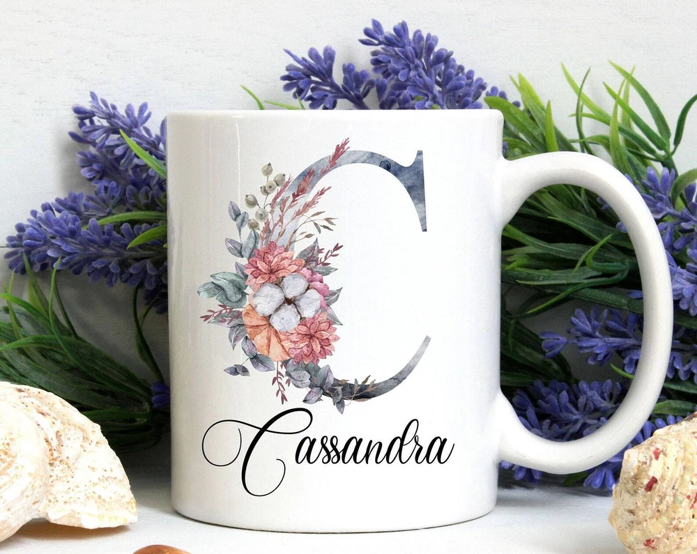 Personalized Initial Name Mug Black Letter With Flowers Modern Mug Monogram Product Details.. This high quality 11oz. ceramic white mug has a premium hard coat that provides crisp and vibrant color reproduction sure to last for years. Perfect for all hot & cold beverages. The highest quality printing possible is used. It will never fade no matter how many times you wash it. Material: 100% Ceramic. Print both sides. Dishwasher and Microwave Safe. High Gloss + Premium White Finish. Printed in the U.S.A. Personalized & Custom. We support personalized and custom mug to add custom, when placing an order, you can add notes to the "order note" in shipping address section. Also you can contact us directly via message. Shipping Info. Ready to ship in 1 to 2 business days, All products are made-to-order and proudly printed in the United States. Shipped by USPS and DHL, You will receive your order in 5-7 days. Replace & Refund. All products are defective during shipping broken, chipped will be replaced free of charge. You are not satisfied with the product, we will refund 100% money to you. If any other issues arise, please do not hesitate to message, we would be more than happy to assist you.