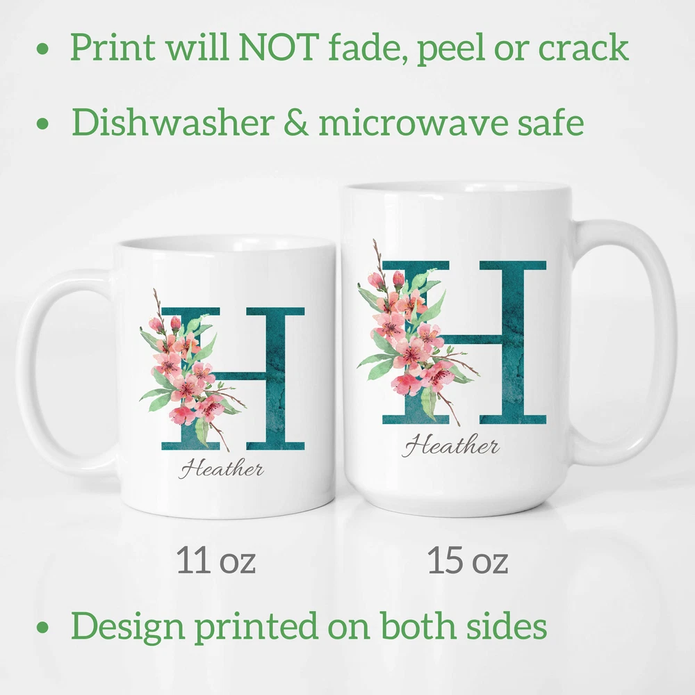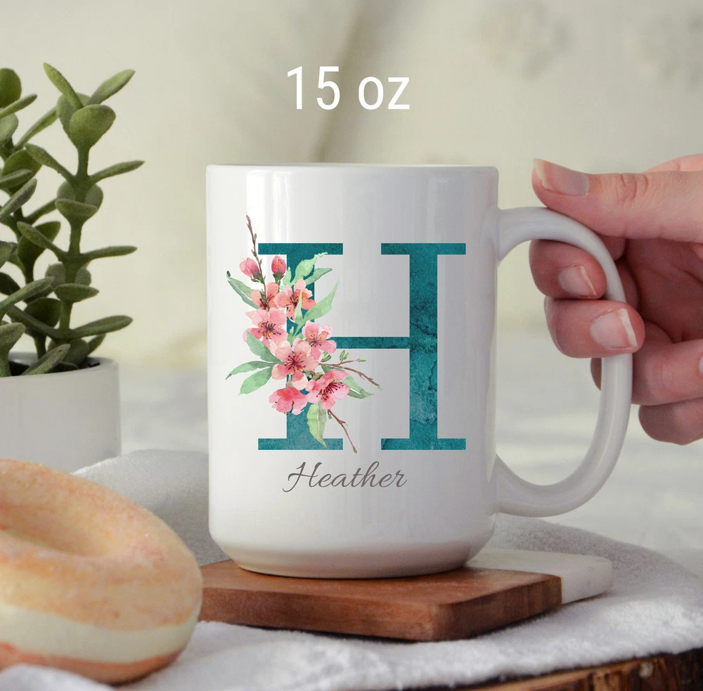 Personalized Monogram Initial Name Mug Floral/flower Alphabet Cup / Flower Gift Product Details.. This high quality 11oz. ceramic white mug has a premium hard coat that provides crisp and vibrant color reproduction sure to last for years. Perfect for all hot & cold beverages. The highest quality printing possible is used. It will never fade no matter how many times you wash it. Material: 100% Ceramic. Print both sides. Dishwasher and Microwave Safe. High Gloss + Premium White Finish. Printed in the U.S.A. Personalized & Custom. We support personalized and custom mug to add custom, when placing an order, you can add notes to the "order note" in shipping address section. Also you can contact us directly via message. Shipping Info. Ready to ship in 1 to 2 business days, All products are made-to-order and proudly printed in the United States. Shipped by USPS and DHL, You will receive your order in 5-7 days. Replace & Refund. All products are defective during shipping broken, chipped will be replaced free of charge. You are not satisfied with the product, we will refund 100% money to you. If any other issues arise, please do not hesitate to message, we would be more than happy to assist you.