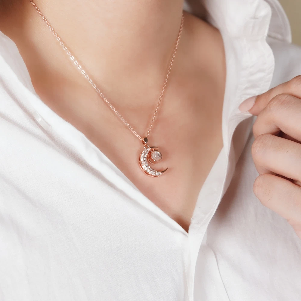 Custom Bubble Projection Photo Necklace A Crescent of Memories, Forever Glowing ❣️ Capture the magic of your love story with this enchanting moon-shaped photo projection necklace. A symbol of romance and connection, it holds a hidden photo that keeps your cherished memories close to the heart. 🎁 Whether it’s a milestone celebration or a sweet gesture, this necklace is the perfect way to honor the beginning of a beautiful journey. Its elegant design and personalized touch make it a timeless keepsake for your special someone. 💡 Product Details 🎀 Material: Stainless Steel 🎀 Pendant Size: 1.5 x 1.5 cm (0.6 x 0.6 in) 🎀 Gemstone: Zircon 🎀 Dimensions : 45 – 50 cm chain, adjustable 🎀 Packaging: Beautifully presented in an elegant gift box, perfect for any occasion. 💡 How to Order 🎀 Choose your preferred finish and customization. 🎀 Add the item to your cart and complete the checkout process. 🎀 Send us a clear photo via eBay messages. The better the image quality, the more stunning the projection will look. 🕊️ A touch of moonlight for the moments that matter most. Need help, mate? 👦 Feel free to chat with us anytime! We're here to assist you!