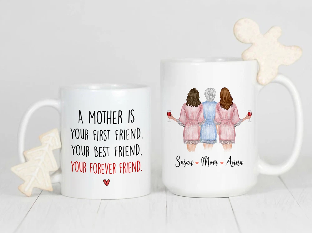 Personalized Mother Is Forever Friend Coffee Mug Custom Mom And Daughter Mug Mom Product Details.. This high quality 11oz. ceramic white mug has a premium hard coat that provides crisp and vibrant color reproduction sure to last for years. Perfect for all hot & cold beverages. The highest quality printing possible is used. It will never fade no matter how many times you wash it. Material: 100% Ceramic. Print both sides. Dishwasher and Microwave Safe. High Gloss + Premium White Finish. Printed in the U.S.A. Personalized & Custom. We support personalized and custom mug to add custom, when placing an order, you can add notes to the "order note" in shipping address section. Also you can contact us directly via message. Shipping Info. Ready to ship in 1 to 2 business days, All products are made-to-order and proudly printed in the United States. Shipped by USPS and DHL, You will receive your order in 5-7 days. Replace & Refund. All products are defective during shipping broken, chipped will be replaced free of charge. You are not satisfied with the product, we will refund 100% money to you. If any other issues arise, please do not hesitate to message, we would be more than happy to assist you.