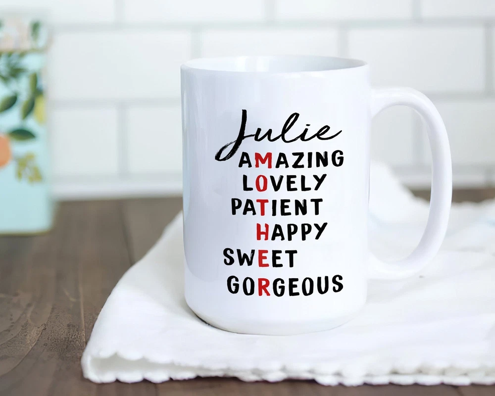 Personalized Mother Vertical Letters Coffee Mug Mom Birthday Gift Mug Custom Mom Product Details.. This high quality 11oz. ceramic white mug has a premium hard coat that provides crisp and vibrant color reproduction sure to last for years. Perfect for all hot & cold beverages. The highest quality printing possible is used. It will never fade no matter how many times you wash it. Material: 100% Ceramic. Print both sides. Dishwasher and Microwave Safe. High Gloss + Premium White Finish. Printed in the U.S.A. Personalized & Custom. We support personalized and custom mug to add custom, when placing an order, you can add notes to the "order note" in shipping address section. Also you can contact us directly via message. Shipping Info. Ready to ship in 1 to 2 business days, All products are made-to-order and proudly printed in the United States. Shipped by USPS and DHL, You will receive your order in 5-7 days. Replace & Refund. All products are defective during shipping broken, chipped will be replaced free of charge. You are not satisfied with the product, we will refund 100% money to you. If any other issues arise, please do not hesitate to message, we would be more than happy to assist you.