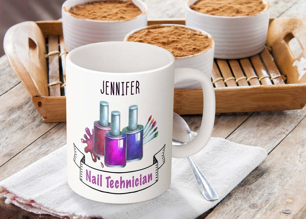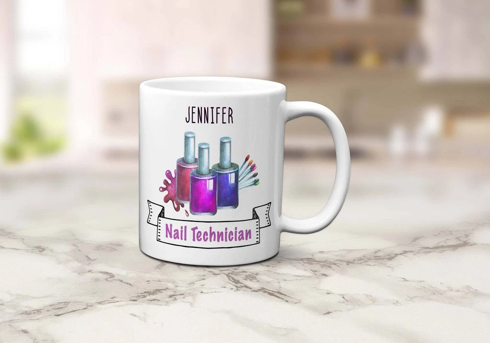 Personalized Nail Tech Mug Custom Nail Technician Mug Personalized Occupation Product Details.. This high quality 11oz. ceramic white mug has a premium hard coat that provides crisp and vibrant color reproduction sure to last for years. Perfect for all hot & cold beverages. The highest quality printing possible is used. It will never fade no matter how many times you wash it. Material: 100% Ceramic. Print both sides. Dishwasher and Microwave Safe. High Gloss + Premium White Finish. Printed in the U.S.A. Personalized & Custom. We support personalized and custom mug to add custom, when placing an order, you can add notes to the "order note" in shipping address section. Also you can contact us directly via message. Shipping Info. Ready to ship in 1 to 2 business days, All products are made-to-order and proudly printed in the United States. Shipped by USPS and DHL, You will receive your order in 5-7 days. Replace & Refund. All products are defective during shipping broken, chipped will be replaced free of charge. You are not satisfied with the product, we will refund 100% money to you. If any other issues arise, please do not hesitate to message, we would be more than happy to assist you.