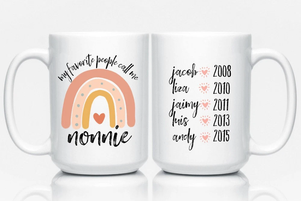 Personalized Nonnie Gift My Favorite People Call Me Nonnie Nonnie Mug Gift For Product Details.. This high quality 11oz. ceramic white mug has a premium hard coat that provides crisp and vibrant color reproduction sure to last for years. Perfect for all hot & cold beverages. The highest quality printing possible is used. It will never fade no matter how many times you wash it. Material: 100% Ceramic. Print both sides. Dishwasher and Microwave Safe. High Gloss + Premium White Finish. Printed in the U.S.A. Personalized & Custom. We support personalized and custom mug to add custom, when placing an order, you can add notes to the "order note" in shipping address section. Also you can contact us directly via message. Shipping Info. Ready to ship in 1 to 2 business days, All products are made-to-order and proudly printed in the United States. Shipped by USPS and DHL, You will receive your order in 5-7 days. Replace & Refund. All products are defective during shipping broken, chipped will be replaced free of charge. You are not satisfied with the product, we will refund 100% money to you. If any other issues arise, please do not hesitate to message, we would be more than happy to assist you.