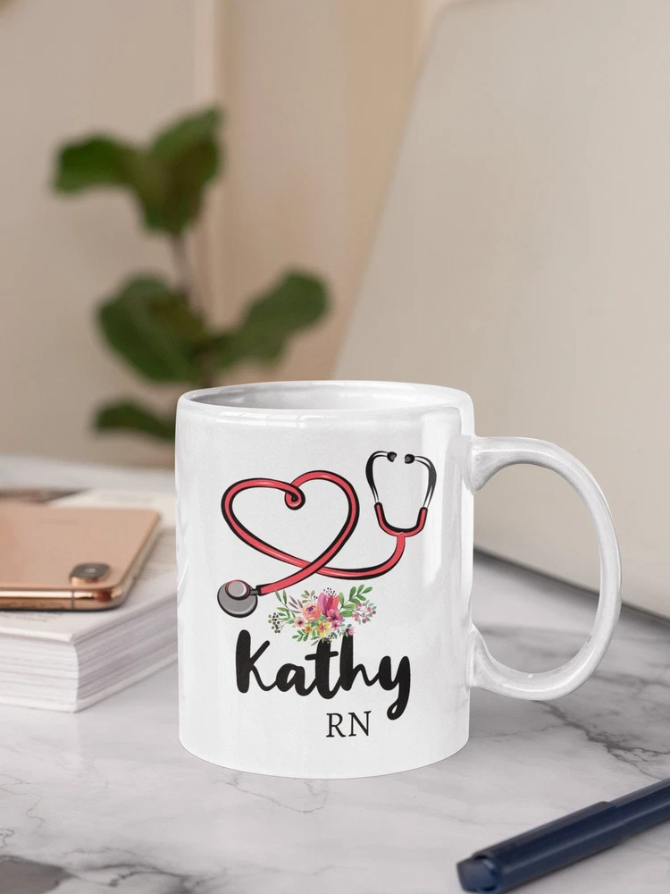 Personalized Nurse Coffee Mug Registered Nurse Gift Nurse Graduation Gift Product Details.. This high quality 11oz. ceramic white mug has a premium hard coat that provides crisp and vibrant color reproduction sure to last for years. Perfect for all hot & cold beverages. The highest quality printing possible is used. It will never fade no matter how many times you wash it. Material: 100% Ceramic. Print both sides. Dishwasher and Microwave Safe. High Gloss + Premium White Finish. Printed in the U.S.A. Personalized & Custom. We support personalized and custom mug to add custom, when placing an order, you can add notes to the "order note" in shipping address section. Also you can contact us directly via message. Shipping Info. Ready to ship in 1 to 2 business days, All products are made-to-order and proudly printed in the United States. Shipped by USPS and DHL, You will receive your order in 5-7 days. Replace & Refund. All products are defective during shipping broken, chipped will be replaced free of charge. You are not satisfied with the product, we will refund 100% money to you. If any other issues arise, please do not hesitate to message, we would be more than happy to assist you.