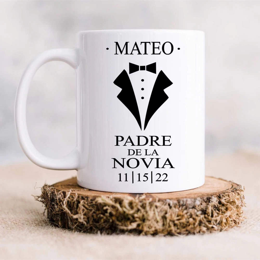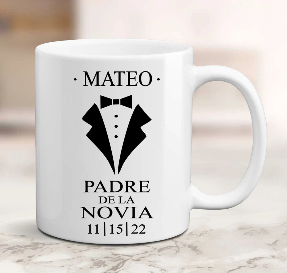 Personalized Padre De La Novia Gift Mug Father Wedding Gift Spanish Father Of The Bride Spanish Father Of The Bride Padre De La Novia Product Details.. This high quality 11oz. ceramic white mug has a premium hard coat that provides crisp and vibrant color reproduction sure to last for years. Perfect for all hot & cold beverages. The highest quality printing possible is used. It will never fade no matter how many times you wash it. Material: 100% Ceramic. Print both sides. Dishwasher and Microwave Safe. High Gloss + Premium White Finish. Printed in the U.S.A. Personalized & Custom. We support personalized and custom mug to add custom, when placing an order, you can add notes to the "order note" in shipping address section. Also you can contact us directly via message. Shipping Info. Ready to ship in 1 to 2 business days, All products are made-to-order and proudly printed in the United States. Shipped by USPS and DHL, You will receive your order in 5-7 days. Replace & Refund. All products are defective during shipping broken, chipped will be replaced free of charge. You are not satisfied with the product, we will refund 100% money to you. If any other issues arise, please do not hesitate to message, we would be more than happy to assist you.