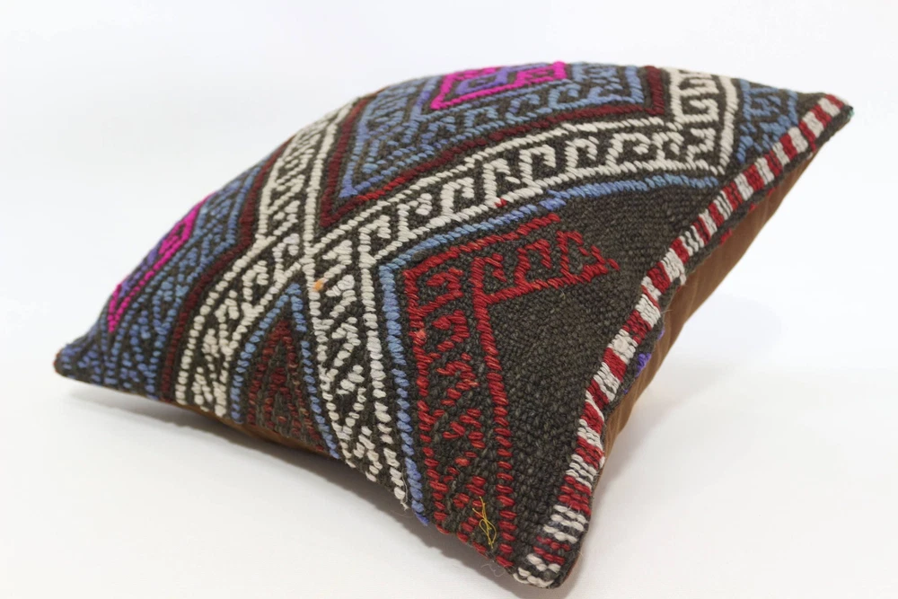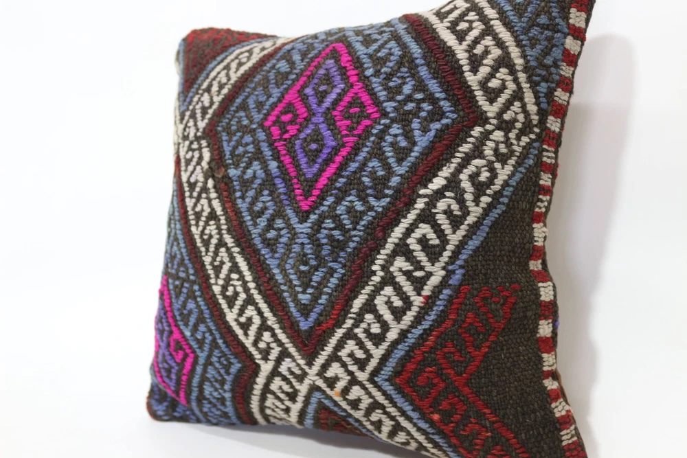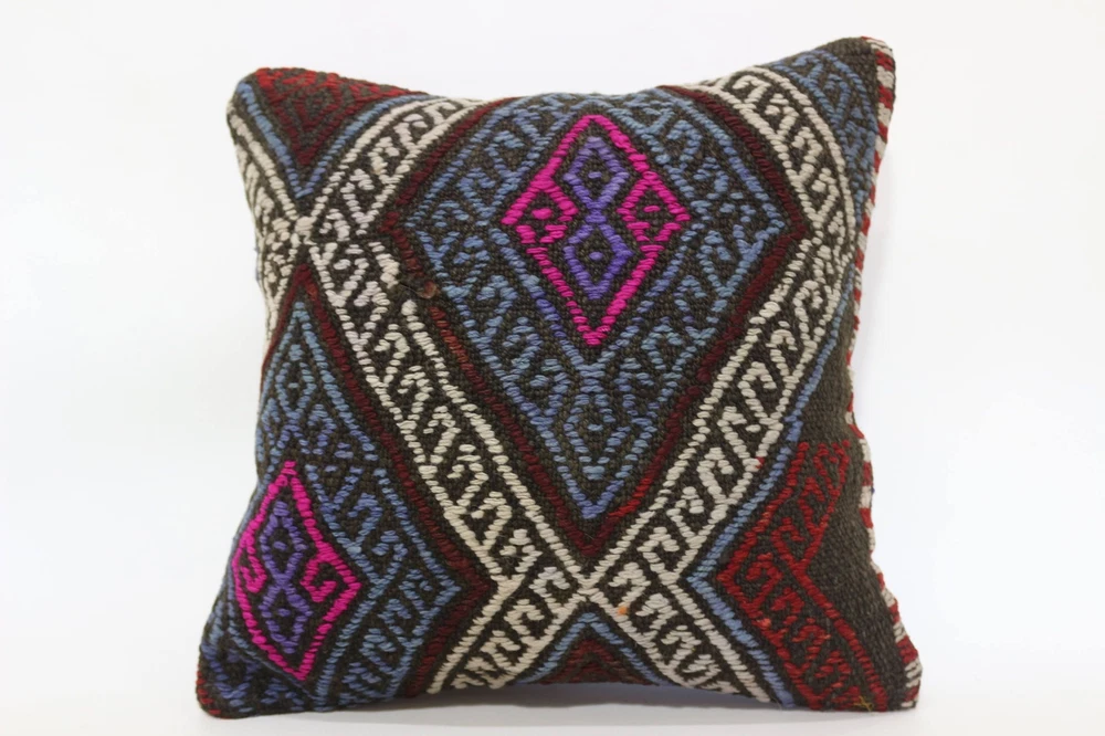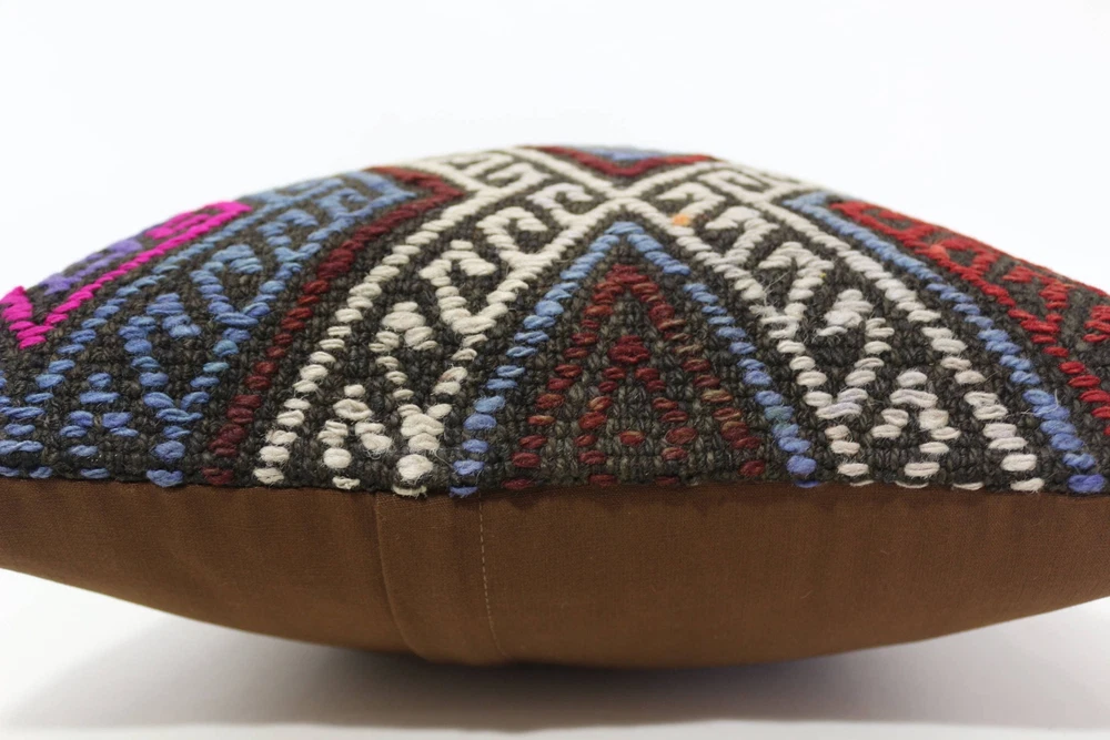 Kilim Pillow Details: All of my beautiful pillow covers or cushion cases are designed and made by me. I am making my throw pillow covers from handmade vintage rugs, Turkish rugs. Therefore, each of my vintage kilim pillowcase is one of kind. These cushions covers are piece of an art. The size of this pillow is 16 x 16 inches or 40 x 40 cm. The front side of this decorative pillow cover, cushion cover is wool on wool vintage kilim rug. The backside of this throw is high quality cotton fabric with a high quality zipper. This listing has 2 option for this handmade pillow. You can choose with insert or without insert. The listing photos is with insert in the pillowcase which is just for demonstration purpose. All of my vintage Turkish rugs have been professionally washed before I cut them as pillow case or cushion case so these kilim covers are 100 posent clean and ready to use. Due to the age and handmade nature of these vintage rugs, there might be imperfections and flaws that are not considered defects. This is a piece of a handmade vintage rug with minor signs of wear consistent with age and use that give it an antique look. You can see the condition of the rug pillow clearly in the detailed photos. I am going to ship your order of decorative pillow as soon as possible. I usually ship in the next day with DHL Express or FedEx which will deliver the kilim pillow, cushion cover just in 3-5 business days. It is my responsible until you receive pillow cover or pillow cover with insert at your door. If the pillow cover or insert get lost or damage during the shipping, I will ship the new kilim pillow cover or pillow insert for free as soon as possible. I take photos of my throw pillows indoor with professional camera which shows the real colors. The photos of these Turkish pillow covers are not altered. Keep in mind the colors of the rug vary slightly in different lights. Please contact to me for additional photos. I take the photos of my vintage rugs outside with daylight to show you the real and natural colors. My photos are not altered. Keep in mind the colors of the rug vary slightly in different lights. Please contact to me for additional photos. SATISFACTION GUARANTEED for your order in my shop. Your SATISFACTION is the most important to me. Please write me if you have any question or if you don't like anything from my pillow covers, cushion covers. If any reason, you are not happy from your Turkish pillow cover, I accept return without any hassle. Please read my shop policies for details. This cushion case or pillow cover can be used as decorative throw pillow, gift pillow, Christmas pillow case, bedding pillow, lumbar pillow, sofa pillow, bohemian pillow, boho pillow. You can find in any kind of Turkish kilim pillow cover in different design such as striped pillow, embroidered pillow, and geometric pillow.