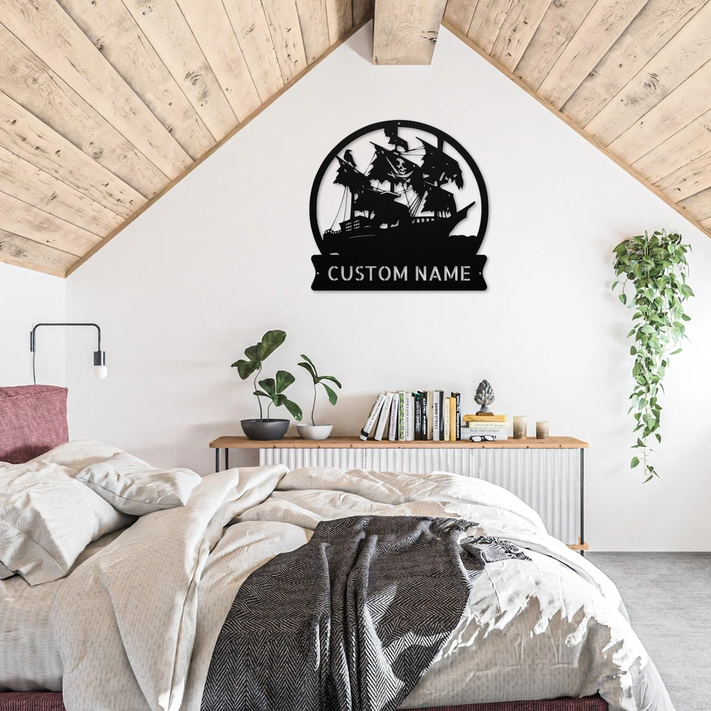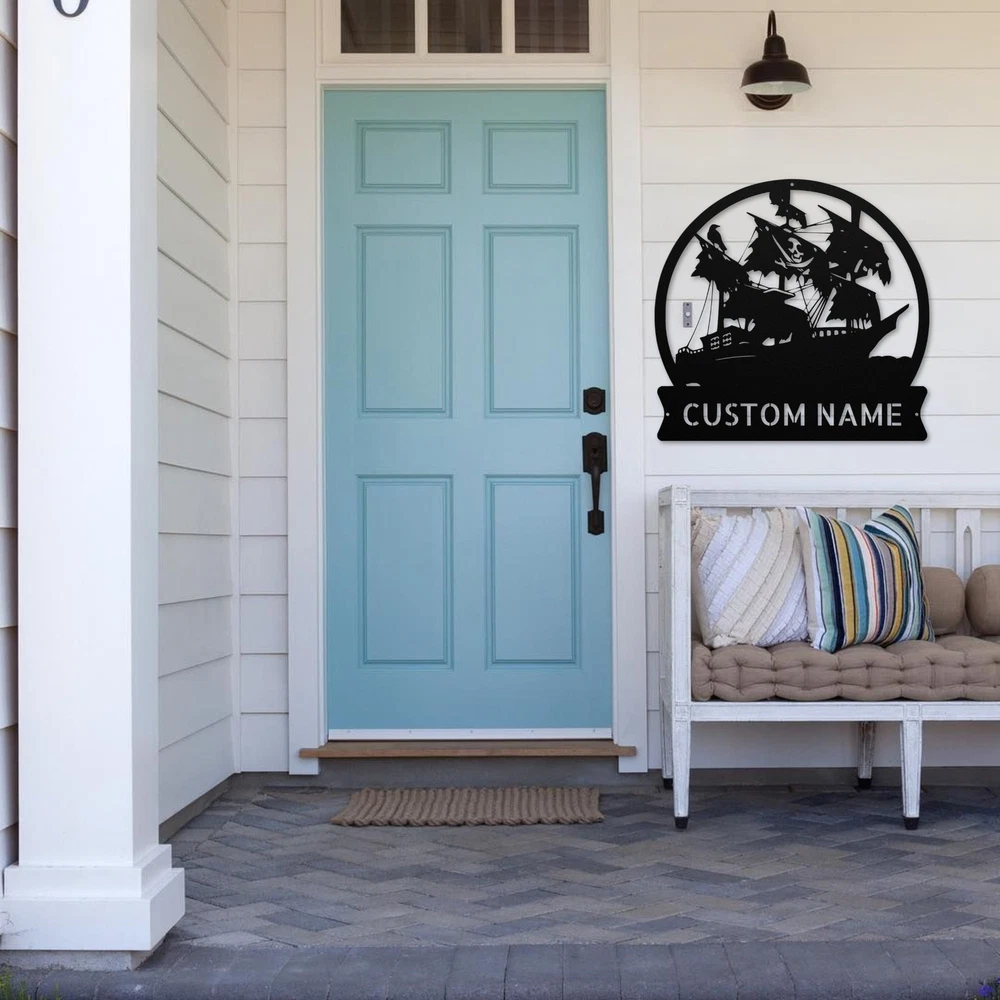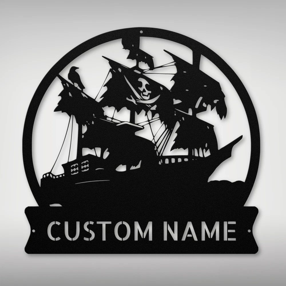 Product Description Personalized Pirate Ship Metal Sign Custom Nautical Decor Gift for Home Office Set sail on a new adventure with the Personalized Pirate Ship Metal Sign . This eye-catching sign is perfect for anyone who loves the sea and pirate lore. It makes a fantastic addition to your home, office, or as a unique gift for a special occasion. Crafted from 16 gauge high-quality metal , this sign is built to last. The powder coating ensures it is dust, weather, and water-resistant, so you can proudly display it indoors or outdoors without worry. Key features include: Customizable Design: Add your name or a special message to make this sign truly one-of-a-kind. Durable Material: Made from sturdy metal for long-lasting beauty and resilience against the elements. Perfect Gift: An ideal present for birthdays, holidays, or any pirate enthusiast in your life. Stylish Decoration: Enhances any space with its nautical charm, suitable for home, office, or nautical-themed events. Bring a touch of the high seas to your decor with the Personalized Pirate Ship Metal Sign . It’s more than just decoration; it’s a celebration of adventure and individuality! Service and Color Choice Our metal signs are designed to be personalized just for you, making them the perfect addition to any space! The default color for our signs is Black , but we also offer a variety of beautiful options including Copper, Gold, White, and Silver . After placing your order, simply contact us with your preferred color choice, and we'll ensure your sign is exactly how you envision it. Let’s create something special together!