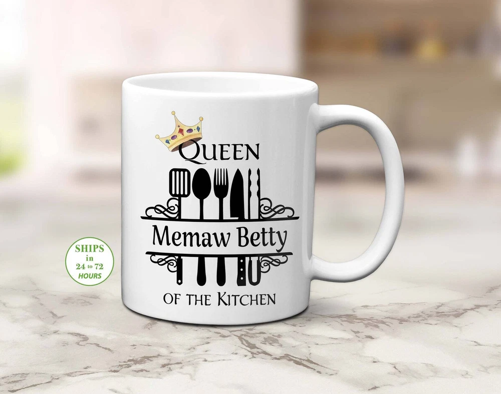 Personalized Queen Of The Kitchen Mug Personalized Custom Kitchen Mug Kitchen Product Details.. This high quality 11oz. ceramic white mug has a premium hard coat that provides crisp and vibrant color reproduction sure to last for years. Perfect for all hot & cold beverages. The highest quality printing possible is used. It will never fade no matter how many times you wash it. Material: 100% Ceramic. Print both sides. Dishwasher and Microwave Safe. High Gloss + Premium White Finish. Printed in the U.S.A. Personalized & Custom. We support personalized and custom mug to add custom, when placing an order, you can add notes to the "order note" in shipping address section. Also you can contact us directly via message. Shipping Info. Ready to ship in 1 to 2 business days, All products are made-to-order and proudly printed in the United States. Shipped by USPS and DHL, You will receive your order in 5-7 days. Replace & Refund. All products are defective during shipping broken, chipped will be replaced free of charge. You are not satisfied with the product, we will refund 100% money to you. If any other issues arise, please do not hesitate to message, we would be more than happy to assist you.