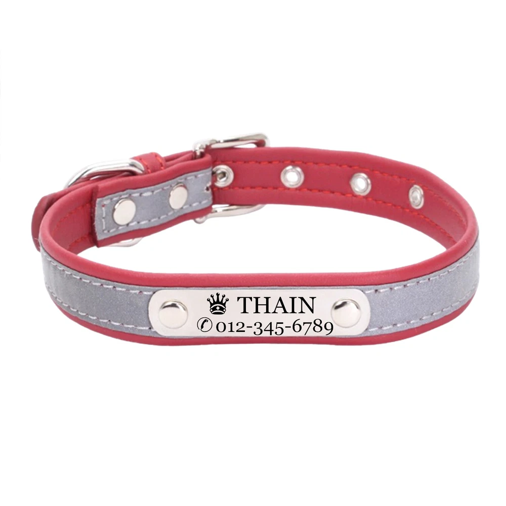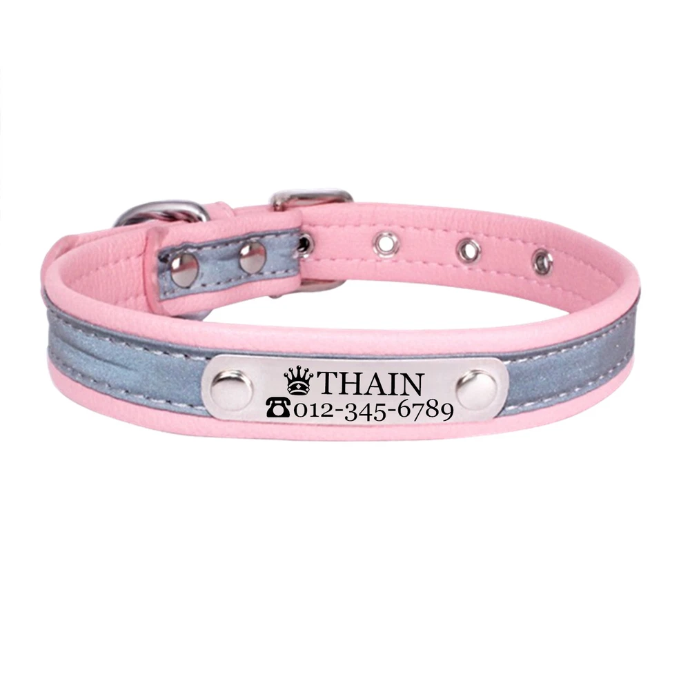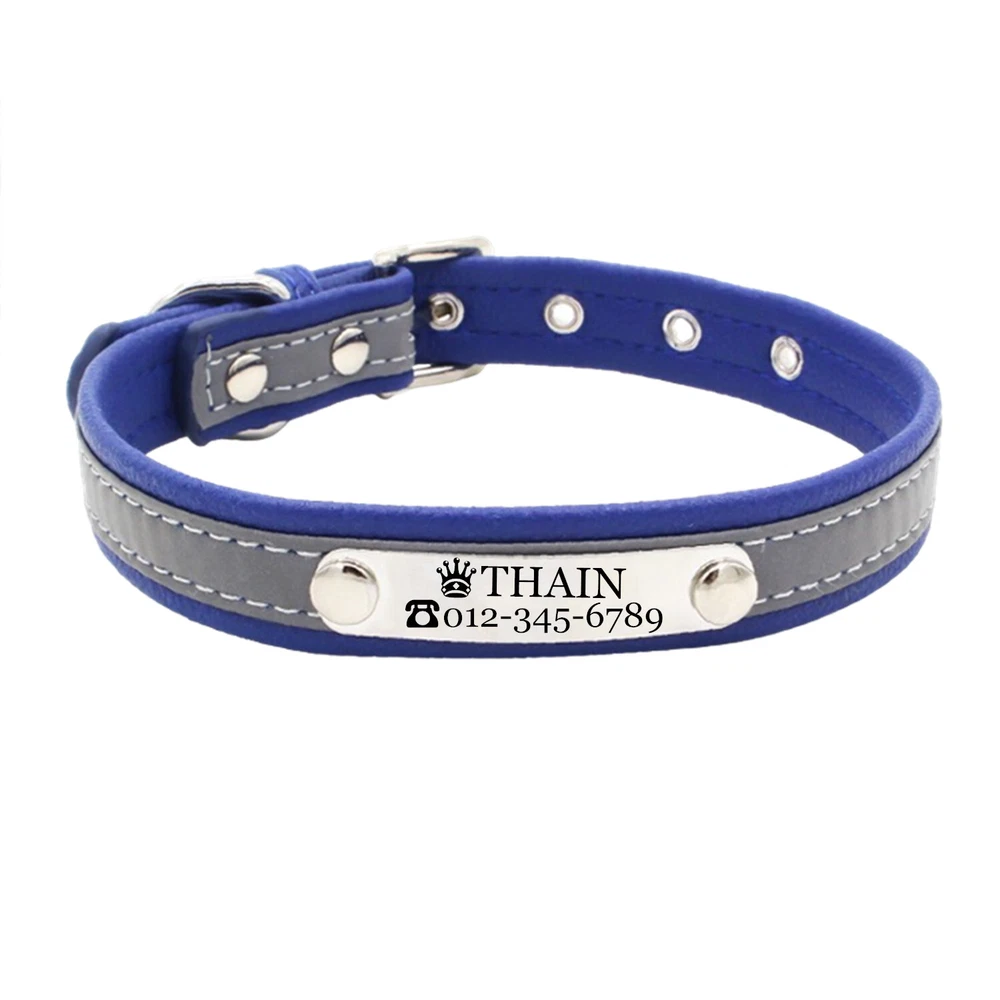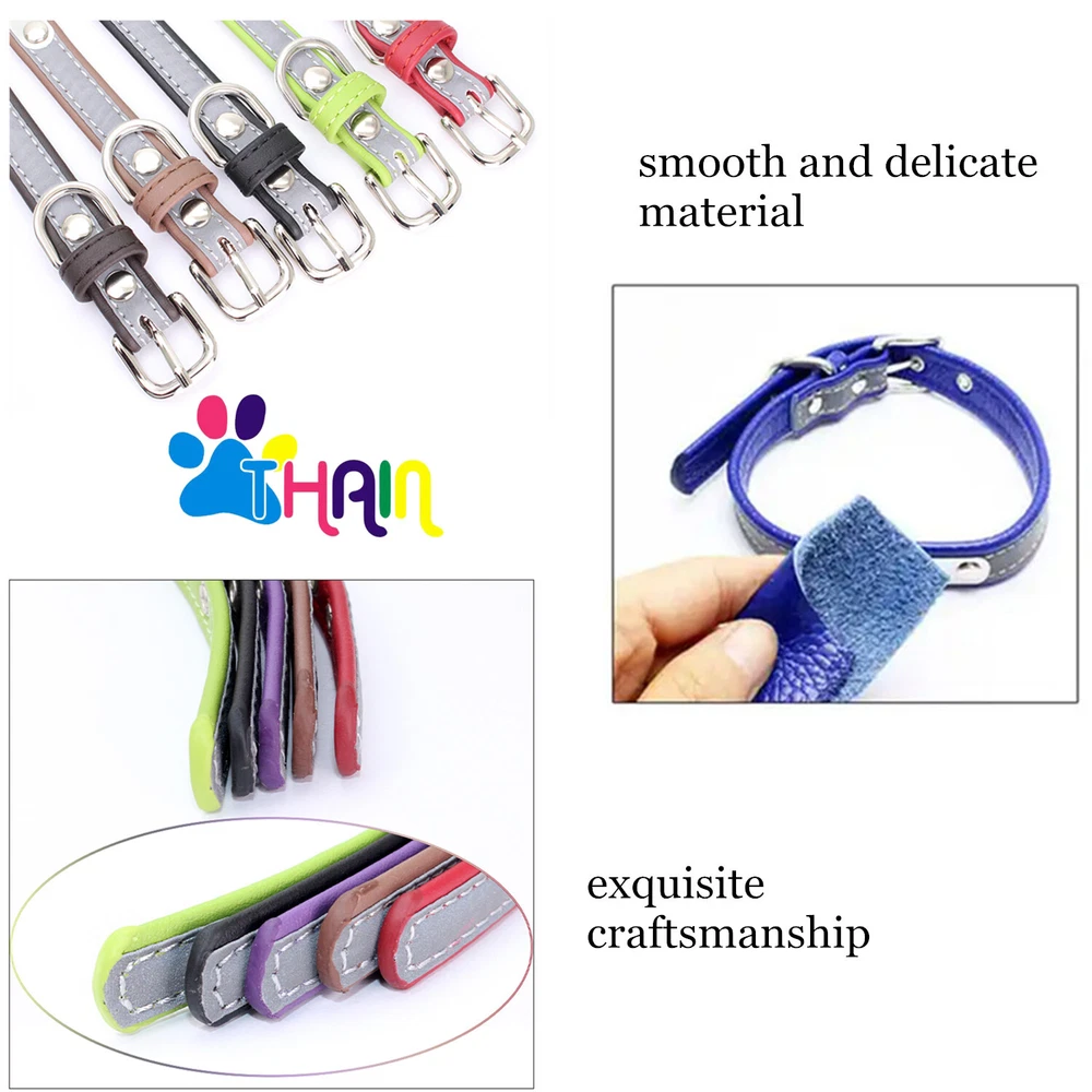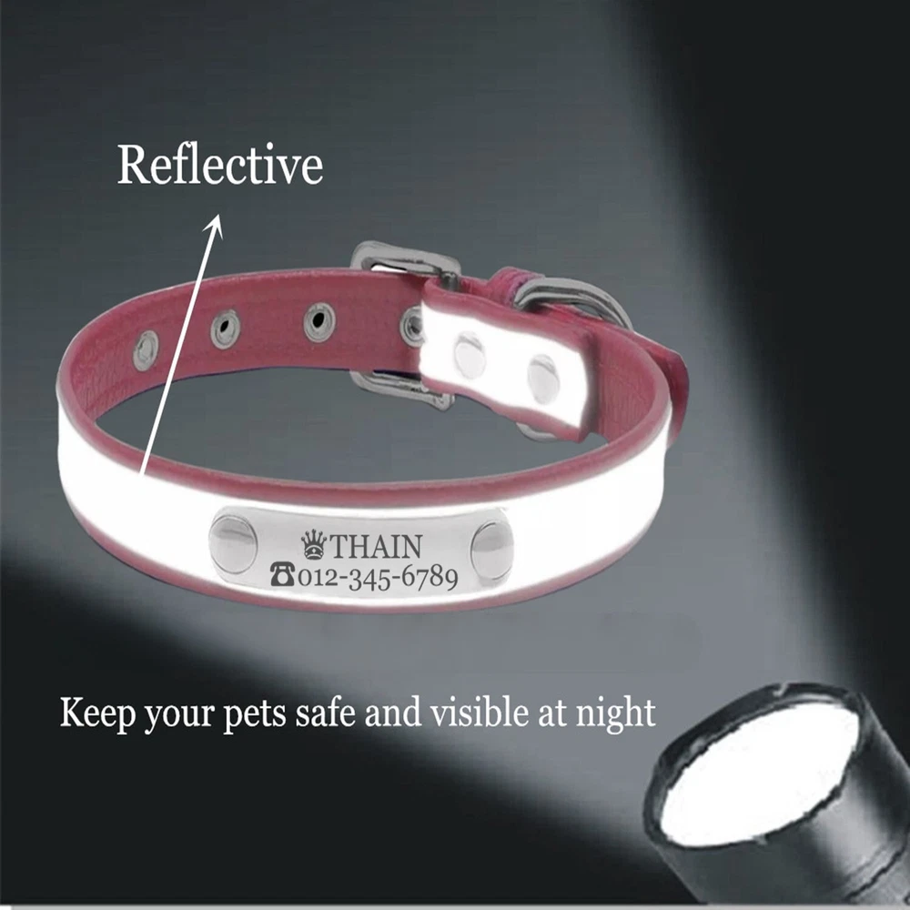 Product Name: THAIN Personalized Reflective Cat Dog Collar with Name Plate Custom Engraved Cute Puppy Kitten Dog Cat Collars for Male Female Boy Girl Small Medium Large Dogs Material: M icrofiber+Metal Buckle Size: XXS/S/M/L/XL(See the measurement on the size picture) Font used: Arial or Georgia How to Order Please write engraving details in box at the top of listing page. Product Features: ★ 【 Material H igh-grade microfiber material, softer and more comfortable than PU leather collars, Perfectly solves the problem of nylon collar trapped hair . ★ 【 Reflective 】 High brightness reflective strip, Under the light in the dark environment, the collar will emit more reflective effects. making it easier for people to see your pets. please not the collar does not emit light by itself. ★ 【 Metal Buckle and D-Ring 】 Buckle and D-ring are made of alloy metal with rounded corners, sturdy and rust-free. You can also add dog tags, rabies tags, or other tags to the D-ring. ★ 【 Available in 5 Sizes】 X-Small: 0.6"x(8.7-11"), Small: 0.6"x(10.6-13.4"), Medium: 0.8"x(11.4-15"), Large: 1.0"x(14.6-18.5"), X-Large: 1.0"x(18.5-22.4"). Please measure your pet's neck and choose the right size before purchasing(please leave two fingers room to keep pet's relax) Metal Nameplate where we will engrave the pet's name and phone number or address Laser engraving makes words are clear, keeps pet's information engraved permanent. This dog collar fits for many kinds of dogs, like Poodle, Pugs, Dachshund, Terrier, Beagle, Pitbull, Labrador, Bulldog and so on. Note: For engraved words,please send us a message as below: Line 1: pet's name ( you can add one symbol ★ ♂ ✿ ❤ ♛ ) Line 2: phone number (you can add one symbol ☎ ✆ ) Smaple: Line 1: ❤ Bella Line 2: ☎ 012-345-6789 How to choose the right size? Measurement Tips: Please use a soft ruler around your Cat's neck, to measure the surrounding of it. Please don't make it too tight. Better leave a space that can put 2 fingers. So your puppy may feel more comfortable. Size Width Neck Adjustable Weight XS 0.6"(1.5cm) 8.7-11"(22-28cm) 30g S 0.6"(1.5cm) 10.6-13.4"(27-34cm) 32g M 0.8"(2.0cm) 11.4-15"(29-38cm) 42g L 1.0"(2.5cm) 14.6-18.5"(37-47cm) 60g XL 1.0"(2.5cm) 18.5-22.4"(47-57cm) 70g Package include: 1 pcs pet collar Shipping: 1.Items will be sent out in 24-48 hours on payment received from Monday to Saturday. Orders during weekends and holidays will be posted in the following working day. 2.it usually will take 15-20 business days to arrive by SPEEDPAK. 3.Please make sure your shipping address and the order information is correct before placing an order. We will not be responsible for item loss due to wrong or unknown address. 4.International buyers are responsible for duties and customs fees. Return Policy & Warranty: 1. In our store, you will enjoy 30 days return/refund guarantee (Excluding misuse of the item and damaged item). 2. If the item you received is faulty, damaged or incorrect, or any further problems, you can return it for replacement or refund, please contact our customer service on eBay within 30 days from item received. 3.For damaged items on arrival, please contact us immediately, sending us an email with a photo is preferred. We will offer solutions to such cases. Full refund or replacement will be guaranteed. Contact us: Customer satisfaction is very important to us, our goal is to earn 5 star positive feedback on every sale! We would appreciate the chance to correct any problems before posting anything other than 5 stars positive feedback. So if for ANY reason you are not happy, please contact us directly through “My Massage” or "Ask Seller Q". We will get back to you as soon as we are available. We are always stand-by to help for any questions or concerns.