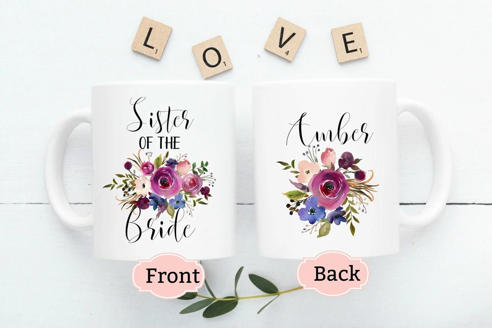 Personalized Sister Of The Bride Custom Wedding Mug Sister Of The Bride Gift Product Details.. This high quality 11oz. ceramic white mug has a premium hard coat that provides crisp and vibrant color reproduction sure to last for years. Perfect for all hot & cold beverages. The highest quality printing possible is used. It will never fade no matter how many times you wash it. Material: 100% Ceramic. Print both sides. Dishwasher and Microwave Safe. High Gloss + Premium White Finish. Printed in the U.S.A. Personalized & Custom. We support personalized and custom mug to add custom, when placing an order, you can add notes to the "order note" in shipping address section. Also you can contact us directly via message. Shipping Info. Ready to ship in 1 to 2 business days, All products are made-to-order and proudly printed in the United States. Shipped by USPS and DHL, You will receive your order in 5-7 days. Replace & Refund. All products are defective during shipping broken, chipped will be replaced free of charge. You are not satisfied with the product, we will refund 100% money to you. If any other issues arise, please do not hesitate to message, we would be more than happy to assist you.
