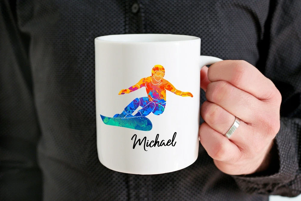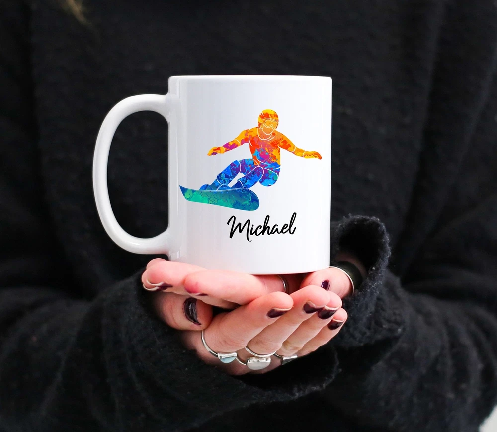 Personalized Snowboarder Mug Snowboarding Gift Snowboarding Gifts For Men Him Product Details.. This high quality 11oz. ceramic white mug has a premium hard coat that provides crisp and vibrant color reproduction sure to last for years. Perfect for all hot & cold beverages. The highest quality printing possible is used. It will never fade no matter how many times you wash it. Material: 100% Ceramic. Print both sides. Dishwasher and Microwave Safe. High Gloss + Premium White Finish. Printed in the U.S.A. Personalized & Custom. We support personalized and custom mug to add custom, when placing an order, you can add notes to the "order note" in shipping address section. Also you can contact us directly via message. Shipping Info. Ready to ship in 1 to 2 business days, All products are made-to-order and proudly printed in the United States. Shipped by USPS and DHL, You will receive your order in 5-7 days. Replace & Refund. All products are defective during shipping broken, chipped will be replaced free of charge. You are not satisfied with the product, we will refund 100% money to you. If any other issues arise, please do not hesitate to message, we would be more than happy to assist you.