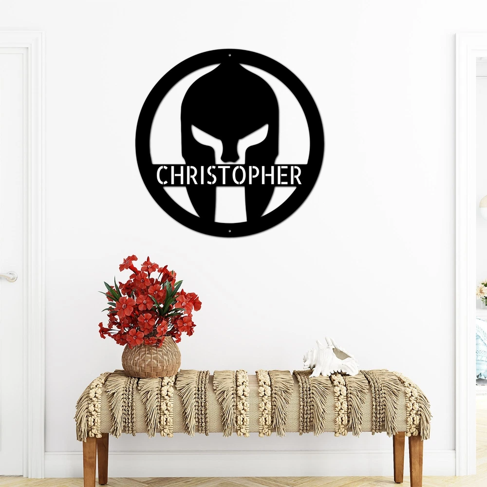 Personalized Spartan Helmet Metal Sign Custom Decor Gift for Home or Office