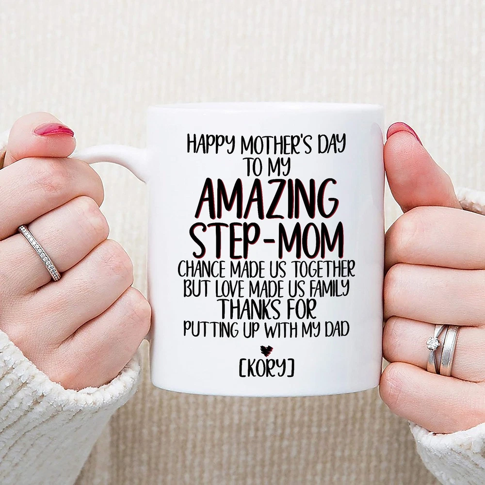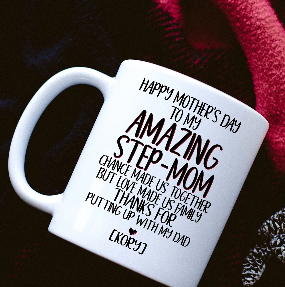 Personalized Step Mom Mug Happy Mothers Day To My Amazing Step Mom Mug Step Mom Product Details.. This high quality 11oz. ceramic white mug has a premium hard coat that provides crisp and vibrant color reproduction sure to last for years. Perfect for all hot & cold beverages. The highest quality printing possible is used. It will never fade no matter how many times you wash it. Material: 100% Ceramic. Print both sides. Dishwasher and Microwave Safe. High Gloss + Premium White Finish. Printed in the U.S.A. Personalized & Custom. We support personalized and custom mug to add custom, when placing an order, you can add notes to the "order note" in shipping address section. Also you can contact us directly via message. Shipping Info. Ready to ship in 1 to 2 business days, All products are made-to-order and proudly printed in the United States. Shipped by USPS and DHL, You will receive your order in 5-7 days. Replace & Refund. All products are defective during shipping broken, chipped will be replaced free of charge. You are not satisfied with the product, we will refund 100% money to you. If any other issues arise, please do not hesitate to message, we would be more than happy to assist you.