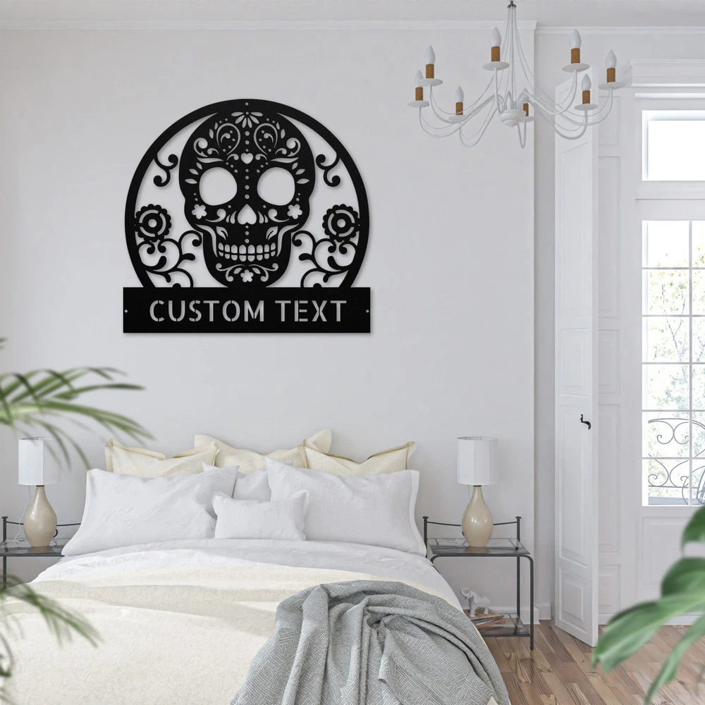 Product Description Personalized Sugar Skull Metal Sign Custom Decor Unique Gift for Home Office Add a touch of vibrant style to your space with our Personalized Sugar Skull Metal Sign ! This striking sign is perfect for those who appreciate unique art and want to showcase their personality. Crafted from 16 gauge high-quality metal , this sign is both sturdy and stylish. The powder coating ensures it’s dust, weather, and water-resistant , making it ideal for indoor or outdoor display. Here are some highlights: Customizable Design: Personalize your sign with a name, date, or message for a special touch. Durable Material: Made to withstand the elements while maintaining its colorful appearance. Great Gift Idea: Perfect for Christmas, birthdays, or any occasion that calls for a unique gift. Versatile Use: Suitable for home, garden, or office decoration, adding flair wherever it’s placed. Elevate your decor with the Personalized Sugar Skull Metal Sign and celebrate your individuality today! Service and Color Choice Our metal signs are designed to be personalized just for you, making them the perfect addition to any space! The default color for our signs is Black , but we also offer a variety of beautiful options including Copper, Gold, White, and Silver . After placing your order, simply contact us with your preferred color choice, and we'll ensure your sign is exactly how you envision it. Let’s create something special together!