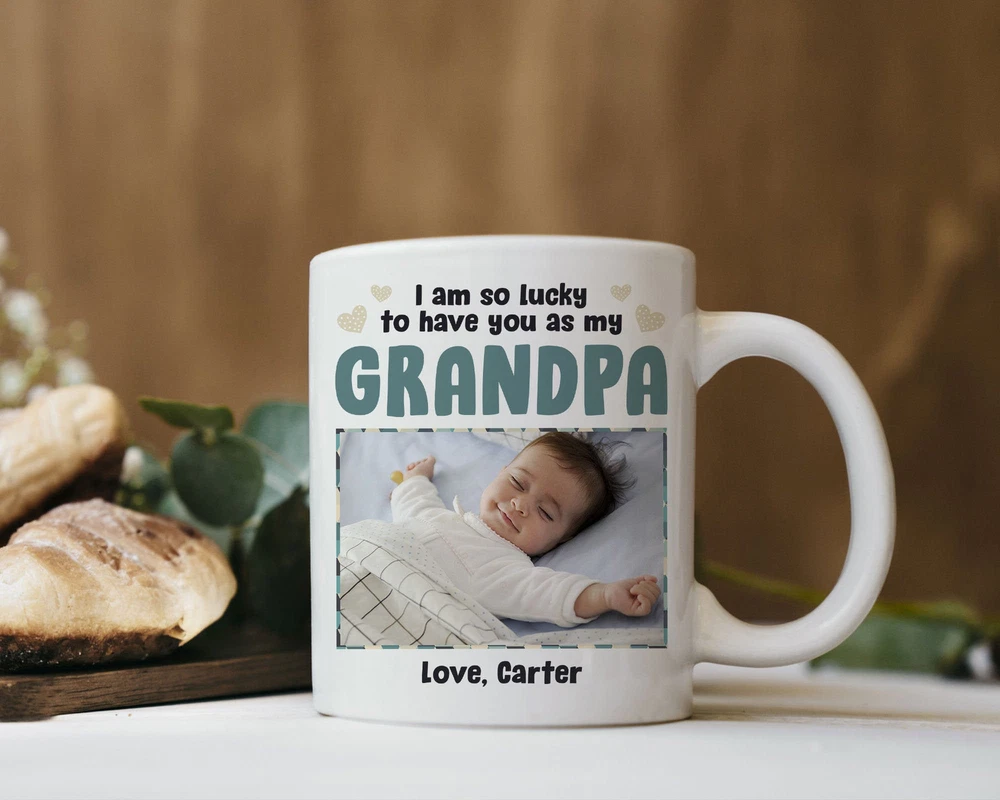 Personalized To My Grandpa Mug Custom Photo Mug Baby Mug From Baby To Grandpa Product Details.. This high quality 11oz. ceramic white mug has a premium hard coat that provides crisp and vibrant color reproduction sure to last for years. Perfect for all hot & cold beverages. The highest quality printing possible is used. It will never fade no matter how many times you wash it. Material: 100% Ceramic. Print both sides. Dishwasher and Microwave Safe. High Gloss + Premium White Finish. Printed in the U.S.A. Personalized & Custom. We support personalized and custom mug to add custom, when placing an order, you can add notes to the "order note" in shipping address section. Also you can contact us directly via message. Shipping Info. Ready to ship in 1 to 2 business days, All products are made-to-order and proudly printed in the United States. Shipped by USPS and DHL, You will receive your order in 5-7 days. Replace & Refund. All products are defective during shipping broken, chipped will be replaced free of charge. You are not satisfied with the product, we will refund 100% money to you. If any other issues arise, please do not hesitate to message, we would be more than happy to assist you.
