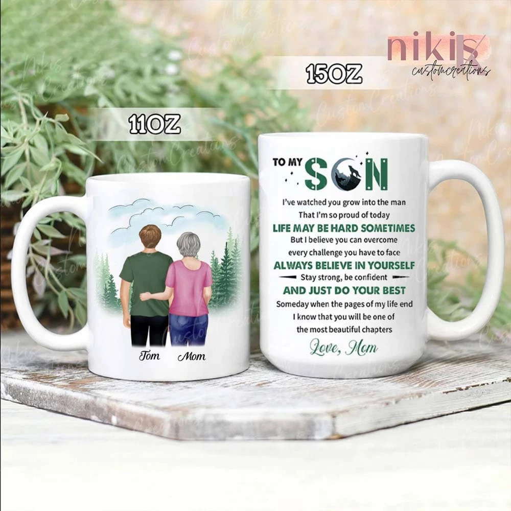 Personalized To My Son Always Believe In Yourself And Coffee Mug Product Details.. This high quality 11oz. ceramic white mug has a premium hard coat that provides crisp and vibrant color reproduction sure to last for years. Perfect for all hot & cold beverages. The highest quality printing possible is used. It will never fade no matter how many times you wash it. Material: 100% Ceramic. Print both sides. Dishwasher and Microwave Safe. High Gloss + Premium White Finish. Printed in the U.S.A. Personalized & Custom. We support personalized and custom mug to add custom, when placing an order, you can add notes to the "order note" in shipping address section. Also you can contact us directly via message. Shipping Info. Ready to ship in 1 to 2 business days, All products are made-to-order and proudly printed in the United States. Shipped by USPS and DHL, You will receive your order in 5-7 days. Replace & Refund. All products are defective during shipping broken, chipped will be replaced free of charge. You are not satisfied with the product, we will refund 100% money to you. If any other issues arise, please do not hesitate to message, we would be more than happy to assist you.