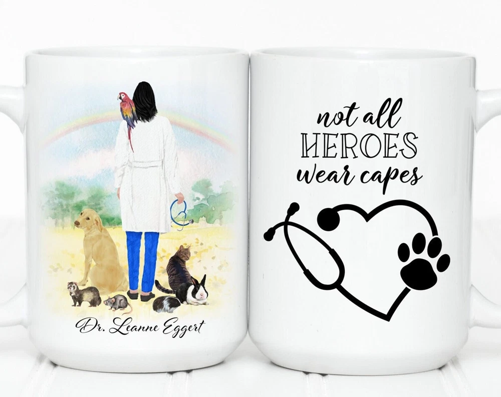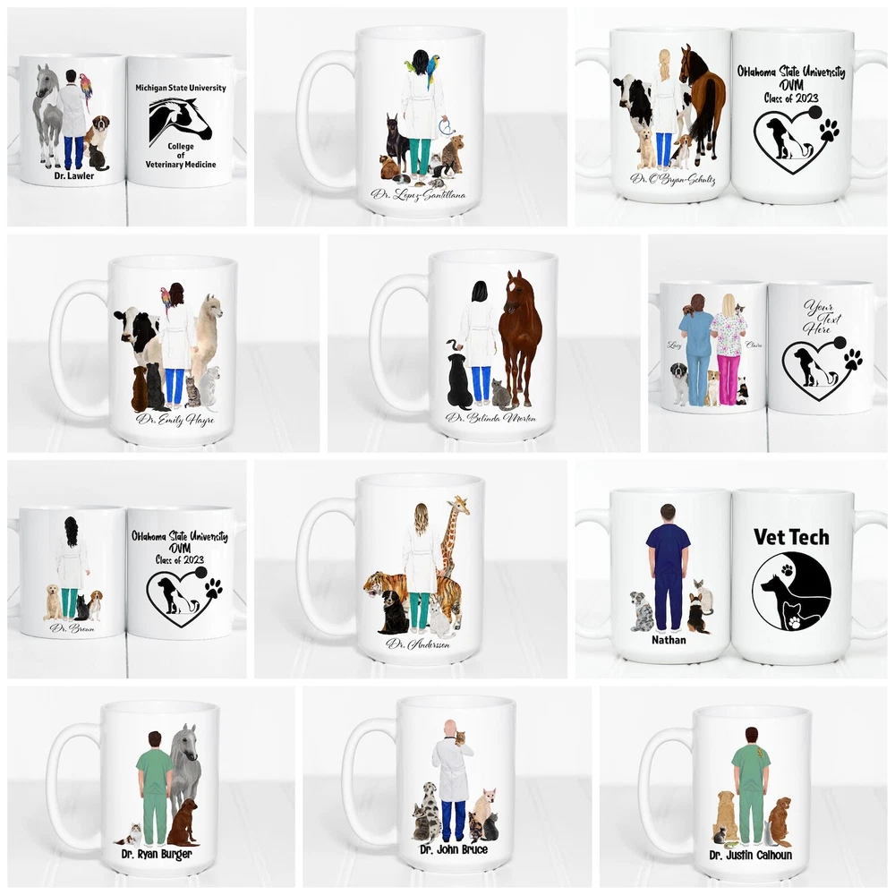 Personalized Veterinarian Mug Graduation Gift Veterinary Graduation Gift Veterinary Personalized Gift For Her Custom Vet Mug Product Details.. This high quality 11oz. ceramic white mug has a premium hard coat that provides crisp and vibrant color reproduction sure to last for years. Perfect for all hot & cold beverages. The highest quality printing possible is used. It will never fade no matter how many times you wash it. Material: 100% Ceramic. Print both sides. Dishwasher and Microwave Safe. High Gloss + Premium White Finish. Printed in the U.S.A. Personalized & Custom. We support personalized and custom mug to add custom, when placing an order, you can add notes to the "order note" in shipping address section. Also you can contact us directly via message. Shipping Info. Ready to ship in 1 to 2 business days, All products are made-to-order and proudly printed in the United States. Shipped by USPS and DHL, You will receive your order in 5-7 days. Replace & Refund. All products are defective during shipping broken, chipped will be replaced free of charge. You are not satisfied with the product, we will refund 100% money to you. If any other issues arise, please do not hesitate to message, we would be more than happy to assist you.