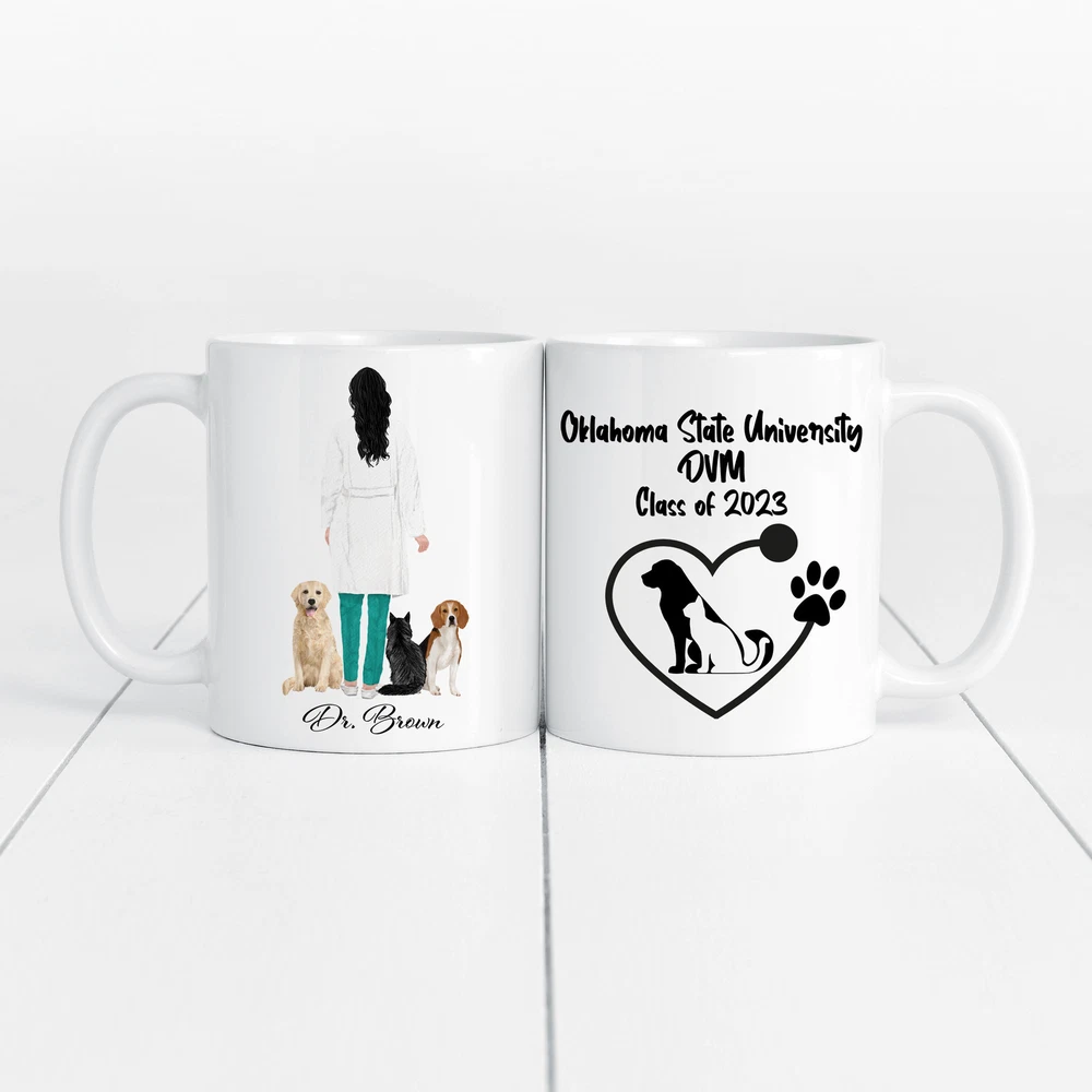 Personalized Veterinarian Mug Graduation Gift Veterinary Graduation Gift Product Details.. This high quality 11oz. ceramic white mug has a premium hard coat that provides crisp and vibrant color reproduction sure to last for years. Perfect for all hot & cold beverages. The highest quality printing possible is used. It will never fade no matter how many times you wash it. Material: 100% Ceramic. Print both sides. Dishwasher and Microwave Safe. High Gloss + Premium White Finish. Printed in the U.S.A. Personalized & Custom. We support personalized and custom mug to add custom, when placing an order, you can add notes to the "order note" in shipping address section. Also you can contact us directly via message. Shipping Info. Ready to ship in 1 to 2 business days, All products are made-to-order and proudly printed in the United States. Shipped by USPS and DHL, You will receive your order in 5-7 days. Replace & Refund. All products are defective during shipping broken, chipped will be replaced free of charge. You are not satisfied with the product, we will refund 100% money to you. If any other issues arise, please do not hesitate to message, we would be more than happy to assist you.