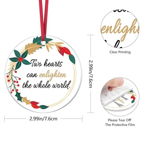Return Policy Fast Delivery Trusted seller Wedding Gifts Christmas Ornament Anniversary Engagement Gifts for Couples Couples Gifts Ideas Acrylic Hanging Ornament Valentines Day Gift for Girlfriend Boyfriend Wedding Gifts for Her Product Description 【Anniversary Couple Gifts Ideas】Mark the first, 2nd, 5th, 10th or 50th wedding anniversaries with this acrylic hanging ornament. Whether it's for husband, wife, couples, lover, this ornament adds a touch of elegance to your special day, perfect for anniversary couple Gifts.Your lover will be very happy to receive this gift. 【Couple Gifts for Him Her】Your lover will be full of warmth and surprise when she/he receives this gift, helping to make your relationship warm up.Available for most occasions, such as Birthday, Graduation, Engagement,Wedding,Anniversary,Valentine's day, Thanksgiving, Christmas Day and so on. Sweet gifts will surprise and impress her/him. It's a gift for a . 【Valentines Day Gifts for Her】The most beautiful and special time of the year has come! Let's makes a great keepsake gift for couples, husband, wife, Mr, Mrs, boyfriend, girlfriend, Newlyweds.It's sure to become a beloved part of their holiday celebration.As a surprise, a symbol of how much you care about him/her. 【Christmas Ornaments】This ornament has a ribbon and can be easily hung on a Christmas tree, window, fireplace, wall, or anyw else you want to decorate. On important occasions such as Christmas,Valentine's Day, wedding anniversary,it is an ideal gift for your lover. 【Size and Package】This acrylic hanging ornament is approximately 7.6cm(2.99inch) in size,made of high-quality acrylic with single-sided printing.The package includes 1 beautiful acrylic hanging ornament, 1 ribbon, and 1 velvet bag. You can hang it on a Christmas tree, on a gift box, or as a gift. Shipping Returns Payment Shipping Shipping is FREE to all addresses other than APO/PO boxes in the lower 48 states. All our stock ships from US-based warehouses. Shipped via USPS or UPS (depending on location and package weight) Unless stated otherwise, all orders will ship within 24-72 hours of your payment being processed. Check our feedback to see the great reviews of FAST shipping we offer. Returns Seller does not accept returns Payment We currently accept payment via eBay managed payments only. Once payment is cleared, we will dispatch your shipment within 1-3 business days. Please refer to the "Shipping" tab for more information regarding shipping speed to your destination.