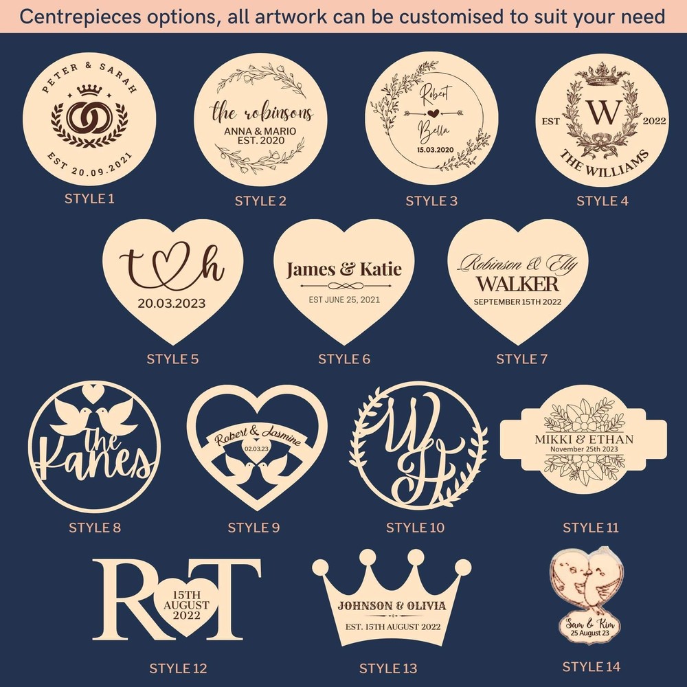 Personalised Wedding Drop Box - Bird Cage Personalised Wedding Drop Box - Bird Cage DETAILS • Our customised laser cut Wooden Wedding Drop Box are made with the name and design of your choice. Let's personalised our beautiful rustic guestbook alternative to suit any special events. This is the perfect way to allow your guests and your loved ones to leave their desires, signature and message by hand on the wooden small hearts, while adding a touch of elegance and memory to your wedding or any occasion venue. • Beautiful personalised vintage Wedding Guest Book perfect for every occasion including your upcoming Wedding, Engagement, Birthday, Hens Party, Bridal, Baby Shower, Baptism, Christening or any special event that you can think of. This Heart Shape Dropbox will add the gorgeous look on any Wedding/ Event Party stationery table decor. • You can always remember all your beloved guest who were celebrate with you on your special day! You can hang it on the wall as memory decoration of your space after the celebration to remember. ✔ FAST SHIPPING: Crafted and dispatched from Sydney, Australia. Ready to be shipped from 1-3 days. Local Pick Up Available, please message us ! ♡ BRIDAL SHOWERS/ WEDDING/ HENS PARTY/ BIRTHDAY / CHRISTENINGS/ BAPTISM/ PARTIES, SPECIAL EVENTS, FUNCTIONS AND MUCH MORE DESIGN AVAILABLE PER YOUR REQUEST ♡ SPECIFICATIONS Each set includes: Guest Book Guest Book's Stand Plain Small Chips: your choice of quantity and shapes Engraved Wooden Box for Small Chips: Optional Materials: Guest Book: + Frame: Defaulted 3mm (0.11") Birch Laminated Plywood: Constructed of five single-ply, high quality hardwood layers which provide strong durability and quality. + Font Side: Defaulted 3mm (0.11") Engraving on Transparent Acrylic + Back Side: Your choice of: ++3mm (0.11") Laminated Plywood ( 4 available colours )or ++3mm (0.11") painted MDF ( 4 available colours ) or ++3mm (0.11") Clear Acrylic Guest Book's Centrepiece: Defaulted 3mm (0.11") Birch Laminated Plywood with customised artwork to suit your need. Guest Book's Stand: Defaulted 3mm (0.11") Birch Laminated Plywood Small Chips: Defaulted 3mm (0.11") Birch Laminated Plywood Wooden Box: Defaulted 3mm (0.11") Birch Laminated Plywood Dimensions GUEST BOOK ( W x H ): Size of the guest book depending on the number of guests (small chips) at your wedding. 30 chips- 23 x 33cm (9" x 13") 50 chips- 25 x 36cm ( 10" x 14") 60 chips- 25 x 36cm ( 10" x 14") 80 chips- 30 x 43cm (12" x 17") 100 chips- 33 x 48cm (13" x 19") 150 chips- 40 x 58cm (16" x 23") 200 chips- 48 x 70cm (19" x 28") 250 chips- 55 x 80cm (22" x 31.5") 300 chips- 60 x 90cm ( 24" x 35") SMALL CHIPS FOR DROPBOX: 3.3cm (1.3") Width, Height varies depending on different chip's shape. WOODEN BOX FOR SMALL CHIPS (depending on the number of chips) Length: 10 - 20cm (4" - 8") Width: 6.5 - 15cm ( 2.5" - 6") Height: 2.5 - 5cm ( 1" - 2") Technique: Laser Cut & Laser Engraving. Personalise any design with any name, date, available template design or custom logo, your own image. Note: - Due to the nature of wood, the colouring, markings, knots, and rustic characteristics will vary and may result in lighter and darker areas in the engraving. Each item will be unique. You can treat your timber sign with mineral oil to keep it looking great forever! HOW TO ORDER 1. Choose Chips Quantity & Wooden Box options 2. Select your preferred Background's material ( type your Material's colour in step 3) 3. Type in your preferred Background Material's colour, Chip Shape, Centrepiece's artwork style number # & exact order you want it manufacture based on our provided Design Template Options for the Centrepiece. Wooden Outer Box will be matched Centrepiece's artwork. Add message for Inter Box You can add additional instructions in ( ) brackets. Example: - Background of Guestbook Material's Colour ( see picture for colour: clear acrylic, walnut, black, etc.): Black (painted MDF) - Chip Shape: Heart - Centrepiece's Artwork Style & Names, Date, etc.: Style #9, James & Katie, EST June 25,2021 - Outer's Box: Sam artwork as Centrepiece, Inter's Box: Help us build Memories ▸If you want to use your own logo, please attach/ send us your file once you finish . Please note to attach the highest resolution file as possible to avoid quality issues. Not all files are scanned prior to manufacturing, if you're not sure, please send us an email after placing the order to confirm if the file is of an acceptable quality. ▸You can combine or pick any font, icon, style, etc between our provided designs, or choose not to include a date, title or icon for example. All artwork based on our available design is free of charge. ▸If you don't like any of our template and want to create your own bespoke artwork design, please feel free to contact us with any questions you may have, a small additional fee may apply. DELIVERY TIME Processing Time: Upon placing an order, our dedicated team initiates the meticulous process of designing your artwork(s), collecting your item(s), crafting your personalised product(s), and carefully packaging it. The duration of production varies based on the chosen production process and the complexity involved. Please find below estimated turnaround times: Item Type Processing Time* Rush Order (25% Surcharge)* Non-Personalised Items 1-2 business days - Personalised Items 2-7 business days 1-2 business days Signs & Hoops 3-10 business days 1-3 business days * The provided processing time does not include the duration required for customer artwork approval. Timely responses to artwork confirmation emails are crucial, as any delays in approval will extend the overall processing time. Rush Order option is available during checkout. Shipping Time: We send out your order when all items are ready. The delivery time varies based on your chosen shipping options and location. After shipping, you'll get a confirmation email with a tracking number. If there are no scans in the first 24 hours, don