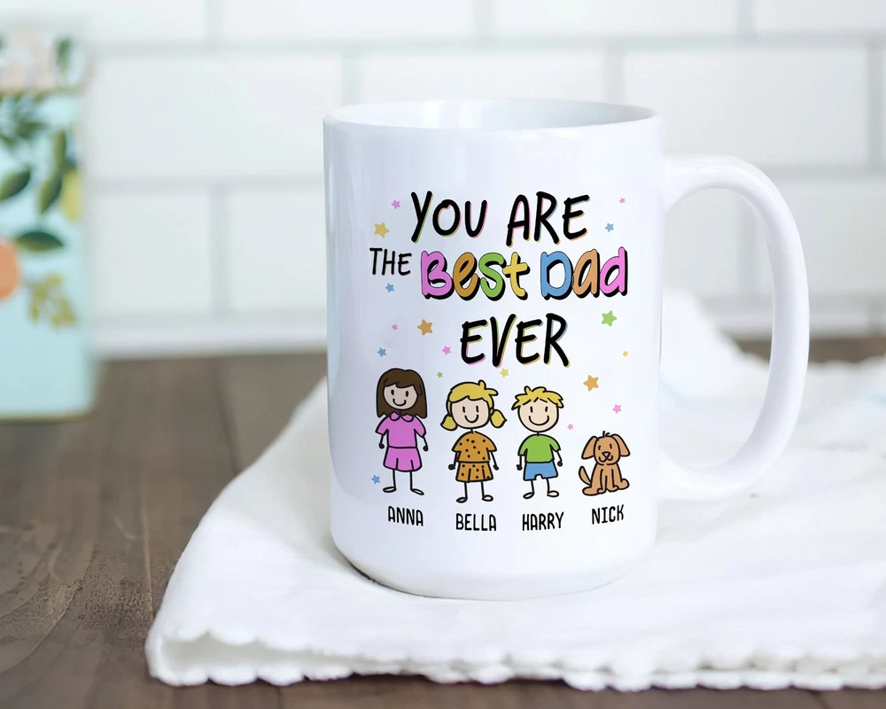 Personalized You Are The Best Dad Ever Mug Dad Birthday Mug Best Dad Ever Mug Product Details.. This high quality 11oz. ceramic white mug has a premium hard coat that provides crisp and vibrant color reproduction sure to last for years. Perfect for all hot & cold beverages. The highest quality printing possible is used. It will never fade no matter how many times you wash it. Material: 100% Ceramic. Print both sides. Dishwasher and Microwave Safe. High Gloss + Premium White Finish. Printed in the U.S.A. Personalized & Custom. We support personalized and custom mug to add custom, when placing an order, you can add notes to the "order note" in shipping address section. Also you can contact us directly via message. Shipping Info. Ready to ship in 1 to 2 business days, All products are made-to-order and proudly printed in the United States. Shipped by USPS and DHL, You will receive your order in 5-7 days. Replace & Refund. All products are defective during shipping broken, chipped will be replaced free of charge. You are not satisfied with the product, we will refund 100% money to you. If any other issues arise, please do not hesitate to message, we would be more than happy to assist you.