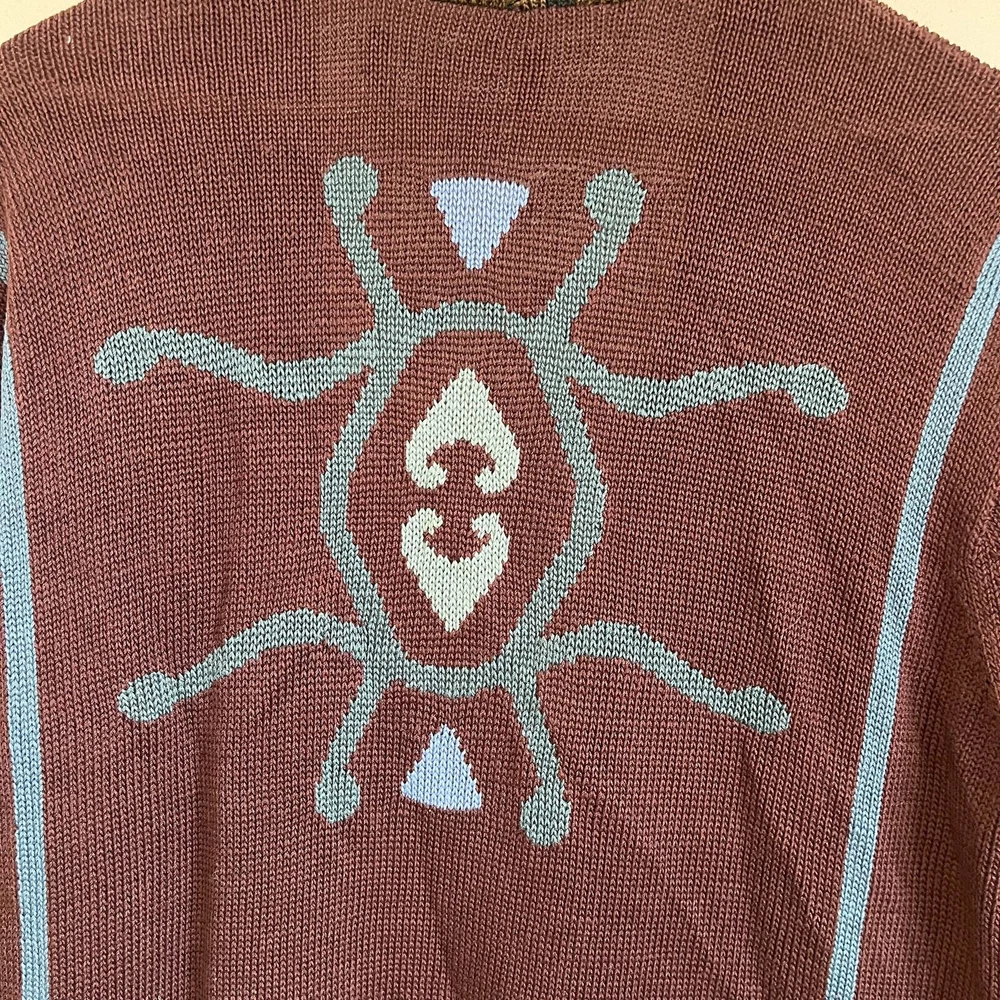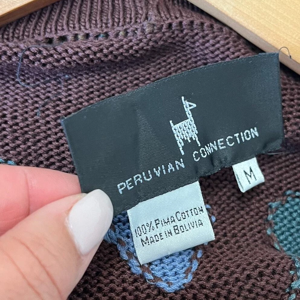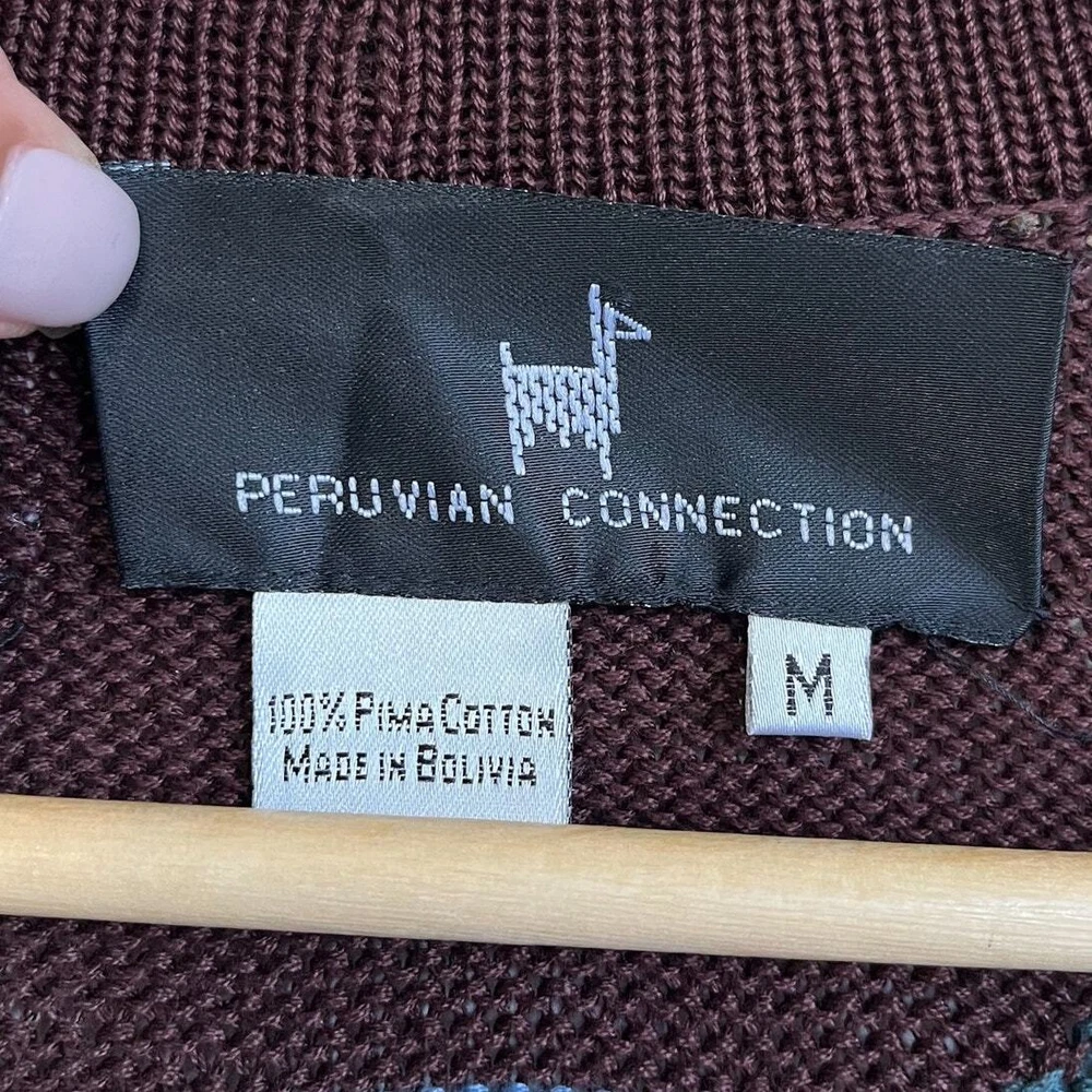 Fit: Regular Occasion: Casual, Travel, Business, Party/Cocktail Accents: Embroidered Size: M Season: Fall, Winter, Spring Material: Cotton Garment Care: Hand Wash Only Country/Region of Manufacture: Bolivia Theme: Art, Bohemian, Colorful, Hippie, Peasant, Western Size Type: Regular Pattern: Geometric Vintage: No Department: Women Fabric Type: Knit Style: Tunic Features: Open Type: Sweater Sleeve Type: Raglan Sleeve Brand: Peruvian Connection Sleeve Length: Long Sleeve Knit Style: Tight-Knit Personalize: No Color: Brown