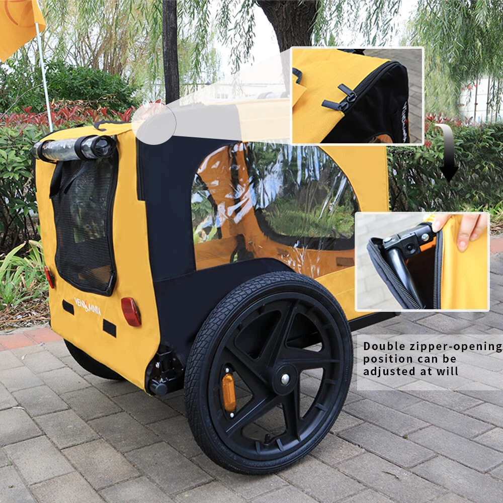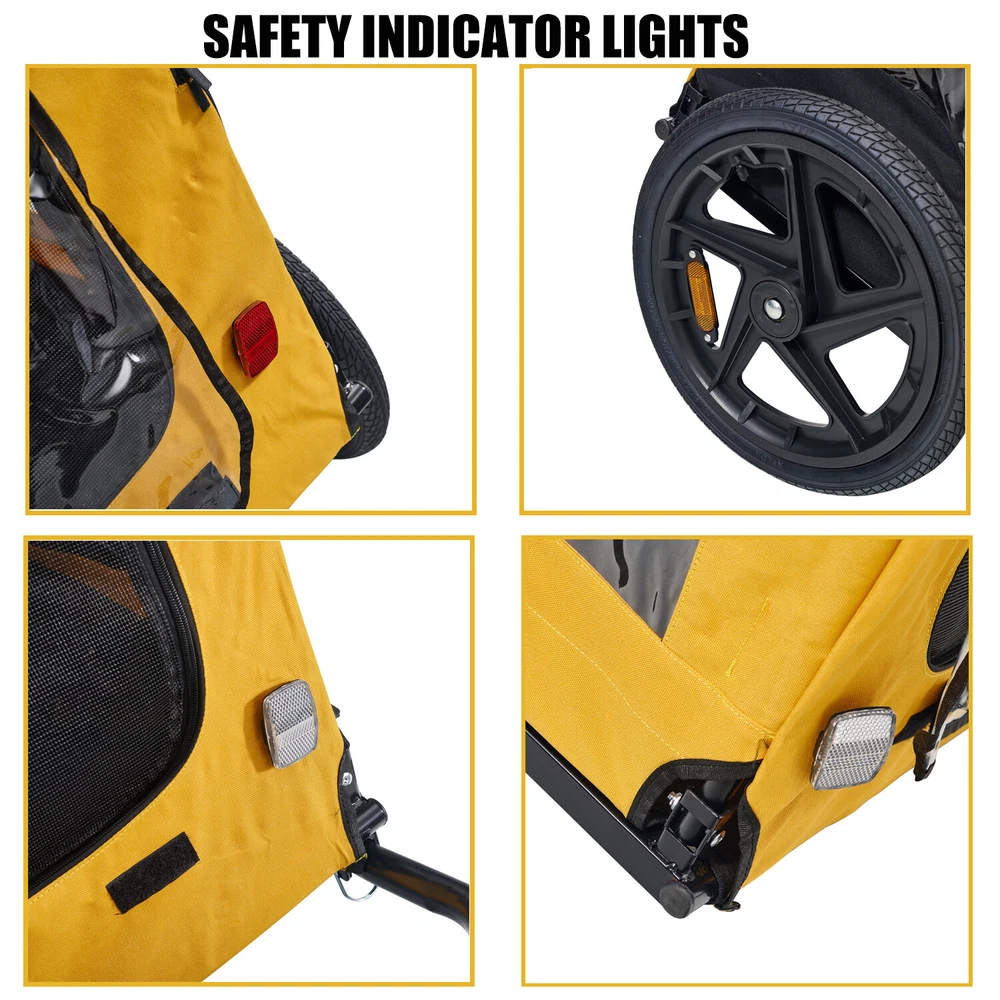 WATER RESISTANT MATERIAL: Element and weather-resistant fabric with a 2-in-1 canopy and mesh shielding so your dog can enjoy the ride without pesky critters getting in the way. FOLDABLE FRAME: The unique folding frame makes the Pet Trailer easy to store and bring along on your next adventure! The low maintenance, 16 inch, 1-piece molded rubber wheels have air-filled tires that easily inflate with standard bike pump. SAFETY FIRST: Includes internal leash and no-slip floor to keep your pup safe and secure. Hook up the trailer, clip them in and enjoy your ride! REAR DOOR : Rear doggy door provides easy entry and exit and securely zips for added safety. BIKE COMPATIBILITY: Compatible with nearly all adult bicycles with included coupler. Fits 20”-29” wheels. Internal leash is adjustable to prevent pets from leaping out of the trailer, holds one Pet up to 88lbs. Plenty of air ventilation. Safety flag is included WATER RESISTANT MATERIAL: Element and weather-resistant fabric with a 2-in-1 canopy and mesh shielding so your dog can enjoy the ride without pesky critters getting in the way. FOLDABLE FRAME: The unique folding frame makes the Pet Trailer easy to store and bring along on your next adventure! The low maintenance, 16 inch, 1-piece molded rubber wheels have air-filled tires that easily inflate with standard bike pump. Internal leash is adjustable to prevent pets from leaping out of the trailer, holds one Pet up to 88lbs. Plenty of air ventilation. WATER RESISTANT MATERIAL: Element and weather-resistant fabric with a 2-in-1 canopy and mesh shielding so your dog can enjoy the ride without pesky critters getting in the way. FOLDABLE FRAME: The unique folding frame makes the Pet Trailer easy to store and bring along on your next adventure! The low maintenance, 16 inch, 1-piece molded rubber wheels have air-filled tires that easily inflate with standard bike pump. SAFETY FIRST: Includes internal leash and no-slip floor to keep your pup safe and secure. Hook up the trailer, clip them in and enjoy your ride! REAR DOOR : Rear doggy door provides easy entry and exit and securely zips for added safety. BIKE COMPATIBILITY: Compatible with nearly all adult bicycles with included coupler. Fits 20”-29” wheels. Internal leash is adjustable to prevent pets from leaping out of the trailer, holds one Pet up to 88lbs. Plenty of air ventilation. Safety flag is included WATER RESISTANT MATERIAL: Element and weather-resistant fabric with a 2-in-1 canopy and mesh shielding so your dog can enjoy the ride without pesky critters getting in the way. FOLDABLE FRAME: The unique folding frame makes the Pet Trailer easy to store and bring along on your next adventure! The low maintenance, 16 inch, 1-piece molded rubber wheels have air-filled tires that easily inflate with standard bike pump. Internal leash is adjustable to prevent pets from leaping out of the trailer, holds one Pet up to 88lbs. Plenty of air ventilation. WATER RESISTANT MATERIAL: Element and weather-resistant fabric with a 2-in-1 canopy and mesh shielding so your dog can enjoy the ride without pesky critters getting in the way. FOLDABLE FRAME: The unique folding frame makes the Pet Trailer easy to store and bring along on your next adventure! The low maintenance, 16 inch, 1-piece molded rubber wheels have air-filled tires that easily inflate with standard bike pump. SAFETY FIRST: Includes internal leash and no-slip floor to keep your pup safe and secure. Hook up the trailer, clip them in and enjoy your ride! REAR DOOR : Rear doggy door provides easy entry and exit and securely zips for added safety. BIKE COMPATIBILITY: Compatible with nearly all adult bicycles with included coupler. Fits 20”-29” wheels. Internal leash is adjustable to prevent pets from leaping out of the trailer, holds one Pet up to 88lbs. Plenty of air ventilation. Safety flag is included WATER RESISTANT MATERIAL: Element and weather-resistant fabric with a 2-in-1 canopy and mesh shielding so your dog can enjoy the ride without pesky critters getting in the way. FOLDABLE FRAME: The unique folding frame makes the Pet Trailer easy to store and bring along on your next adventure! The low maintenance, 16 inch, 1-piece molded rubber wheels have air-filled tires that easily inflate with standard bike pump. Internal leash is adjustable to prevent pets from leaping out of the trailer, holds one Pet up to 88lbs. Plenty of air ventilation. WATER RESISTANT MATERIAL: Element and weather-resistant fabric with a 2-in-1 canopy and mesh shielding so your dog can enjoy the ride without pesky critters getting in the way. FOLDABLE FRAME: The unique folding frame makes the Pet Trailer easy to store and bring along on your next adventure! The low maintenance, 16 inch, 1-piece molded rubber wheels have air-filled tires that easily inflate with standard bike pump. SAFETY FIRST: Includes internal leash and no-slip floor to keep your pup safe and secure. Hook up the trailer, clip them in and enjoy your ride! REAR DOOR : Rear doggy door provides easy entry and exit and securely zips for added safety. BIKE COMPATIBILITY: Compatible with nearly all adult bicycles with included coupler. Fits 20”-29” wheels. Internal leash is adjustable to prevent pets from leaping out of the trailer, holds one Pet up to 88lbs. Plenty of air ventilation. Safety flag is included WATER RESISTANT MATERIAL: Element and weather-resistant fabric with a 2-in-1 canopy and mesh shielding so your dog can enjoy the ride without pesky critters getting in the way. FOLDABLE FRAME: The unique folding frame makes the Pet Trailer easy to store and bring along on your next adventure! The low maintenance, 16 inch, 1-piece molded rubber wheels have air-filled tires that easily inflate with standard bike pump. Internal leash is adjustable to prevent pets from leaping out of the trailer, holds one Pet up to 88lbs. Plenty of air ventilation.