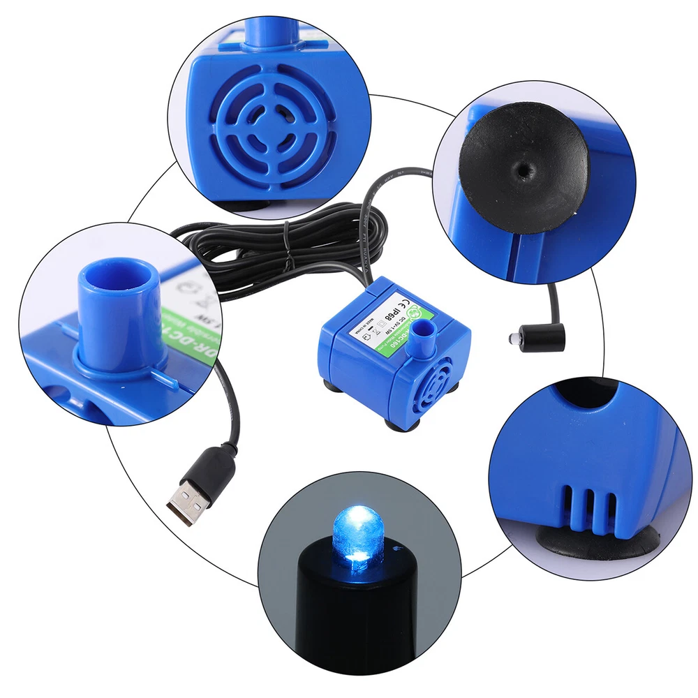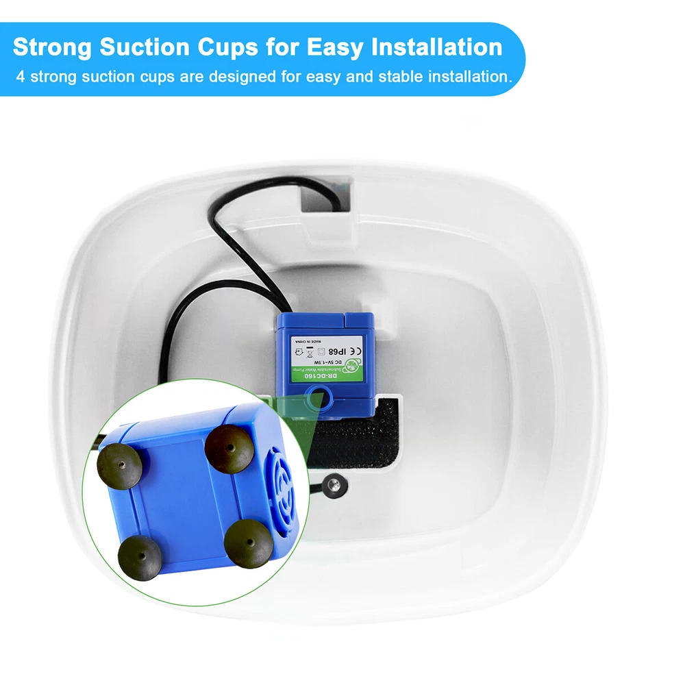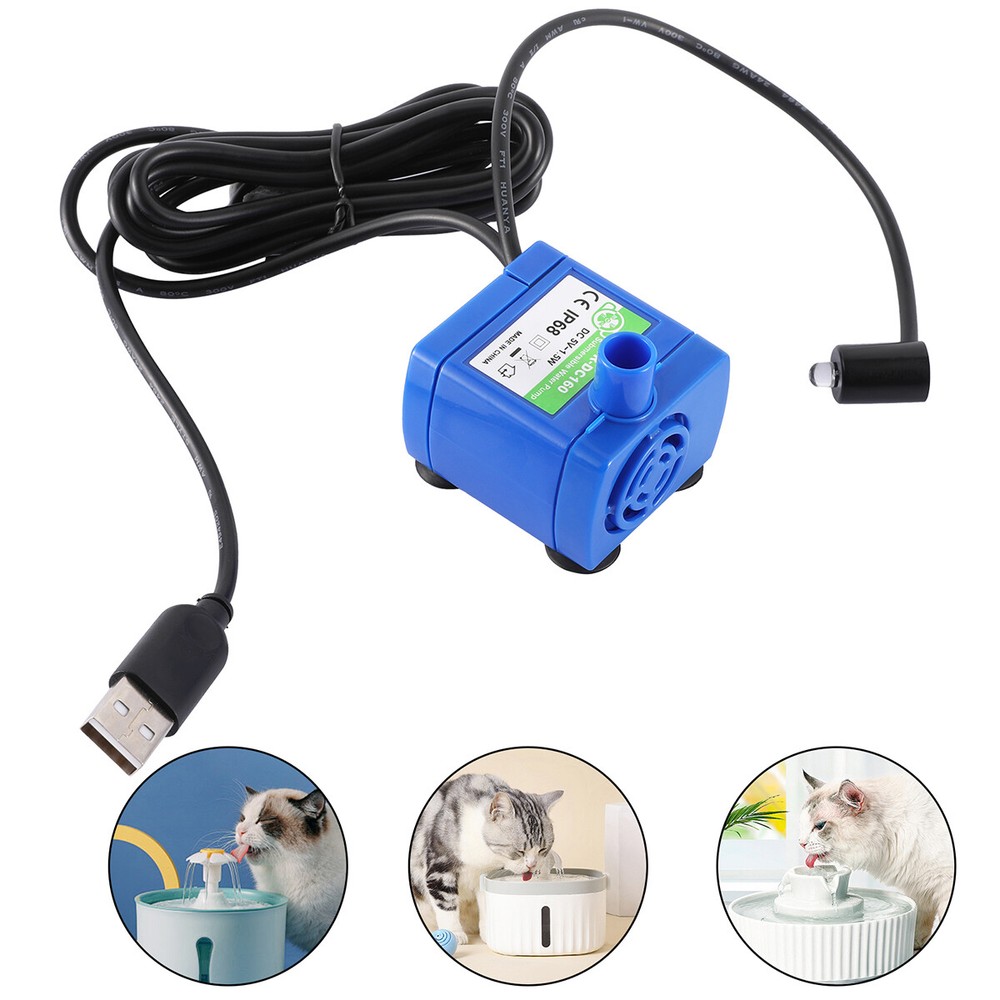 Pet Water Dispenser Pump USB Plug con LED Light Cat Dog Drinking Fountain Motor About this item: 【WARNING】 NOT SUITABLE FOR THESE BRANDS: KASTTY, CATIT, WOPET CAT FOUNTAIN. THE PUMP ONLY MATCHES THE 5V-1.5W ADAPTER 【PURCHASE NOTE】 Please refer to the original water pump label and dimensions before purchasing. Our cat water fountain pump label is: DR-DC160 with LED LIGHT. THE PACKAGE DOES NOT INCLUDE THE ADAPTER. 【INSTRUCTIONS FOR USE】 This product is only suitable for pet water dispensers and is not suitable for other purposes 【ULTRA QUIET & LOW CONSUMPTION UPGRADED PUMP】 1.5W low power consumption & super silent cat fountain replacement pump , give you and your pets sweet sleep 【 LONG LIFE SPAN】 DC 5V low voltage, IP68 Waterproof,USB Plug for various applications--can be used for portable charger, computer and so on. Please use 5V/1A USB power adapters. (USB adapter is not included in the package). Overvoltage can damage the pump 【STRONG SUCTION CUPS FOR EASY INSTALLATION】 The cat water fountain pump have 190cm long power cable and 4 strong suction cups, easy to install 【EASY TO DISASSEMBLE AND CLEAN】 Clean the cat water fountain pump every 2 weeks to extend the pump life Product Feature Powerful Suction Cups: The Pet Water Dispenser Water Pump comes with 4 powerful suction cups, which can be stably adsorbed on a flat surface, preventing movement or tilting during the working process. Strong Silence: The Pet Water Dispenser Water Pump uses advanced technology and is designed for silent operation, which minimizes the impact of noise on pets and their owners. Outdoor Waterproof: The Pet Water Dispenser Water Pump is IP68 waterproof, so you don't have to worry about the performance being affected even if it is invaded by water. Fresh and Clean Water: The Pet Water Dispenser Water Pump provides a constant stream of water that helps keep the water fresh and oxygenated, which can encourage your pet to drink more, promoting hydration and overall health. Filtration System: The Pet Water Dispenser Water Pump is equipped with a filtration system that helps to remove impurities from the water such as hair, debris and odors. Product Specification Load Current: 280mA Maximum Lift: 50cm Continuous Working Life: >10000 hours Waterproof Grade: IP68 Working Voltage: DC5V Load Power: 1.5W Maximum Flow Rate: 160L/H Outlet Diameter: 10.5mm Color: blue Material: plastic Size: 4.6x4.3x4.3cm/1.81x1.69x1.69in Package Includes 1x Pet Water Dispenser Water Pump Payment Delivery details Terms of sales About us Contact us Payment Payments: Paypal, Google Pay, Visa, Master Card, Amerian Express, Discover. Delivery details All items are shipped from US warehouse. 😉😉 😉 We have 2 wharehouse in US, one is in NJ and the other is in CA. 😉😉 😉 We will ship from the warehouse closest to the buyer's delivery address. Don't hesitate make orders ! We ship to your eBay or Paypal address. Please make sure your eBay or Paypal address is correct before you pay. Terms of sales Free return About us Pls contact our customer service firstly if have any problems , we will help to solve the issue, and could offer free return service for full refund or free replacement after confirming. You can buy from us with confidence Contact us If have any problems, please feel free to contact us.