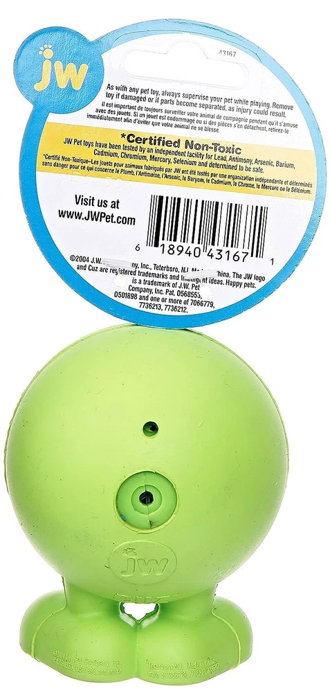 The Cuz is a tough and durable, long-lasting toy, fashioned of thick-walled heavy duty natural rubber and finished with a long-winded squeaker. With its expressive features this toy will be your dog's new best friend. Assorted colors. Made of non-durable rubber. Easily washable and fade resistant Tough and rugged natural rubber squeaking ball Size Medium ,Squeaky action super toy makes it terrific for fetch or solo play