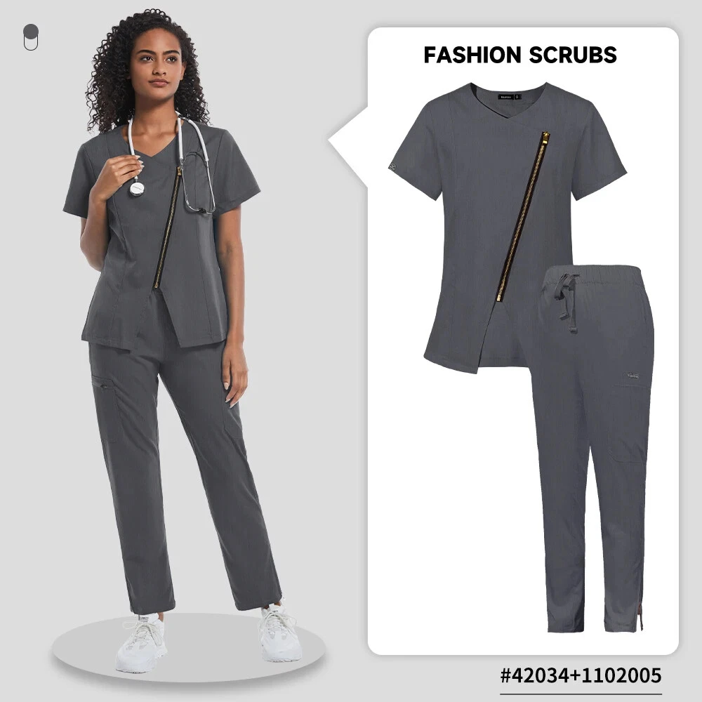 Usage: Medical Medical Scrubs Sets Women: Scrubs tops and pants Material: 72% polyester + 22% rayon + 6% spandex Fabric Type: Broadcloth Item Type: beauty salon uniforms,spa uniforms,pet grooming set Brand: Unbranded Neckline: V-neck Use crowd: Staff member,Chef,Waiter,beauty salon,Pet store Include: tops and pants,suits Features: Fashionable,Breathable,Elastic waist and adjusting rope Season: Spring,summer,autumn,winter Country of Origin: China Decoration: Pocket,Zip Nurse nursing accessories: Doctor Surgery Uniform Type: Shirt