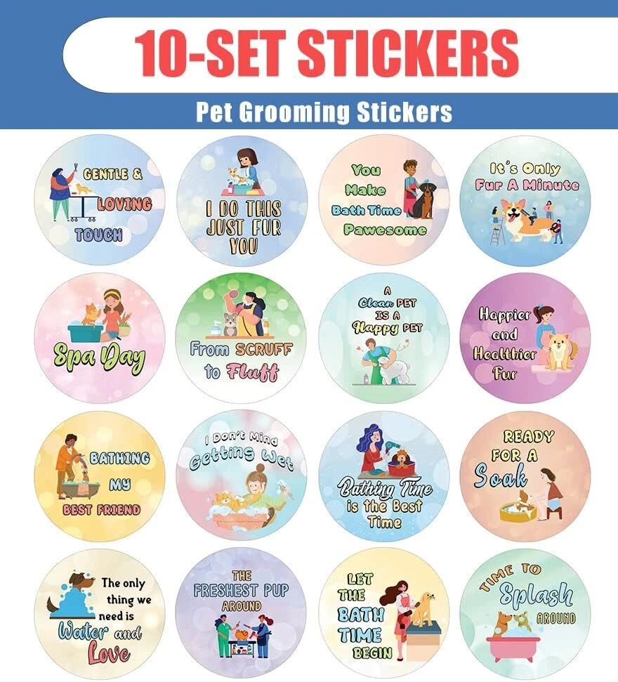 16 UNIQUE DESIGNS INSPIRING STICKERS FOR YOUR DIY PERSONALIZED DECORATIONS - Creanoso Pet Grooming Stickers (10-Sheets). These colorful and uniquely inspiring round shaped stickers are the best tool for DIY decoration and personalization of your belongings. GREAT STOCKING STUFFERS , TEACHING SUPPLEMENTARY MATERIALS, AND GIVEAWAY - Great stocking stuffers gifts for Boys, Girls, Teens, Kids. A perfect design to give during classroom school activities, home schooling,birthdays, anniversaries, family day, and any other special occasions. MADE WITH DURABLE AND WATERPROOF MATERIALS - There is a lamination or coating to make the stickers high water resistant, and WILL NOT fade from the water. The stickers can stick it anywhere you like, and it sticks there and lasts a long time. A COLORFUL AND DECOR STICKER DECAL - Each sheet with 16 individual round stickers. There are 10 sheets , with a total of 160 pcs of stickers. STICKER SIZE: 1.5 INCHES IN DIAMETER Pet Grooming Stickers (10 Sets X 16 Designs) COLORFUL AND COLLECTION OF TEXT STICKERS • Well designed. • Very encouraging. • Self-adhesive. Pet Grooming Stickers (10 Sets X 16 Designs) are super fun to collect; you can't have just one! That's why you will find a selection of stickers right here. Each package comes with different stickers in a variety of designs. Stick them here, stick them there, stick them everywhere! Everyone will love these self-adhesive stickers. These colorful stickers are perfect for any adults and these come with very inspiring messages and bright pictures. A fun, inexpensive way to add a decorative, notes, and stationery. Delight yourself with uplifting messages designs that are very encouraging. Pet Grooming Stickers (10 Sets X 16 Designs) perfect for giveaways, behavior incentives, prizes! These stickers are acid-free, nontoxic, and safe for use on photos. This product comes with a 60 days money back guarantee. You can return them to us for a full refund.