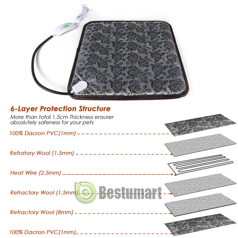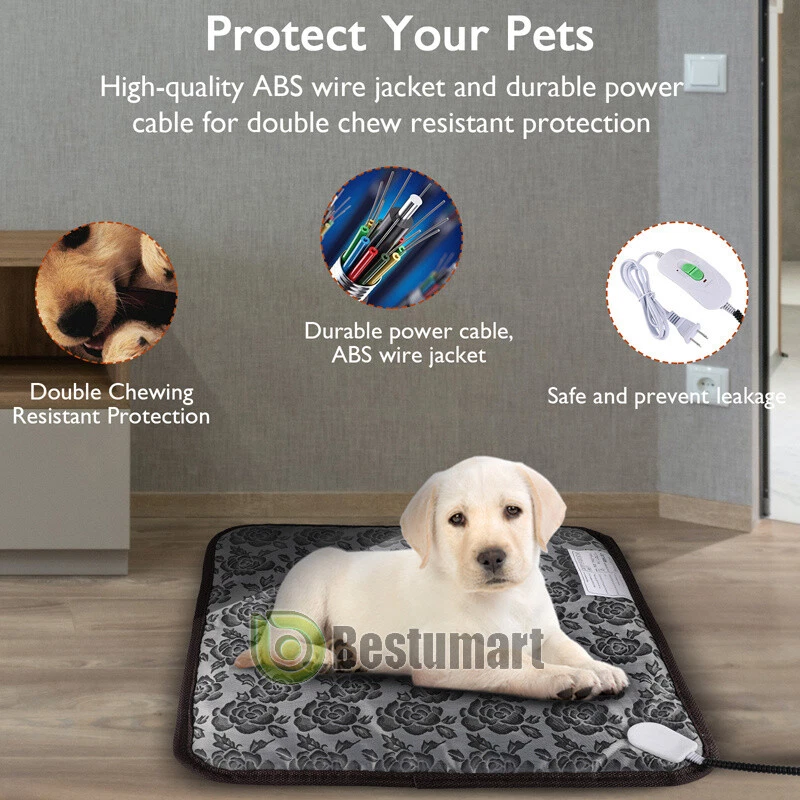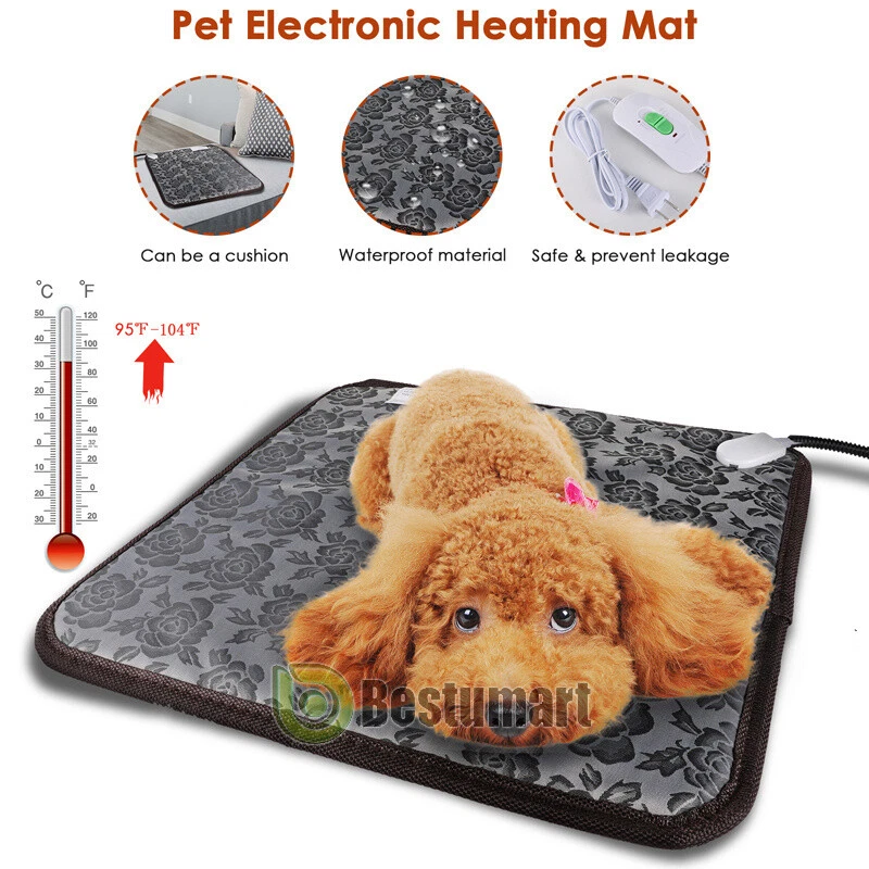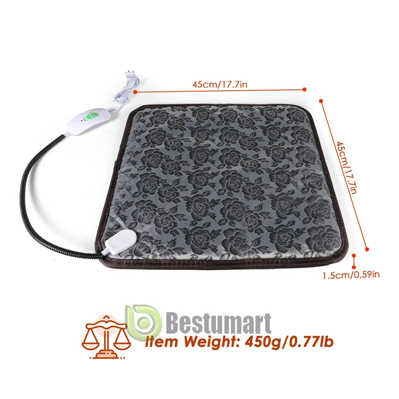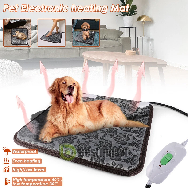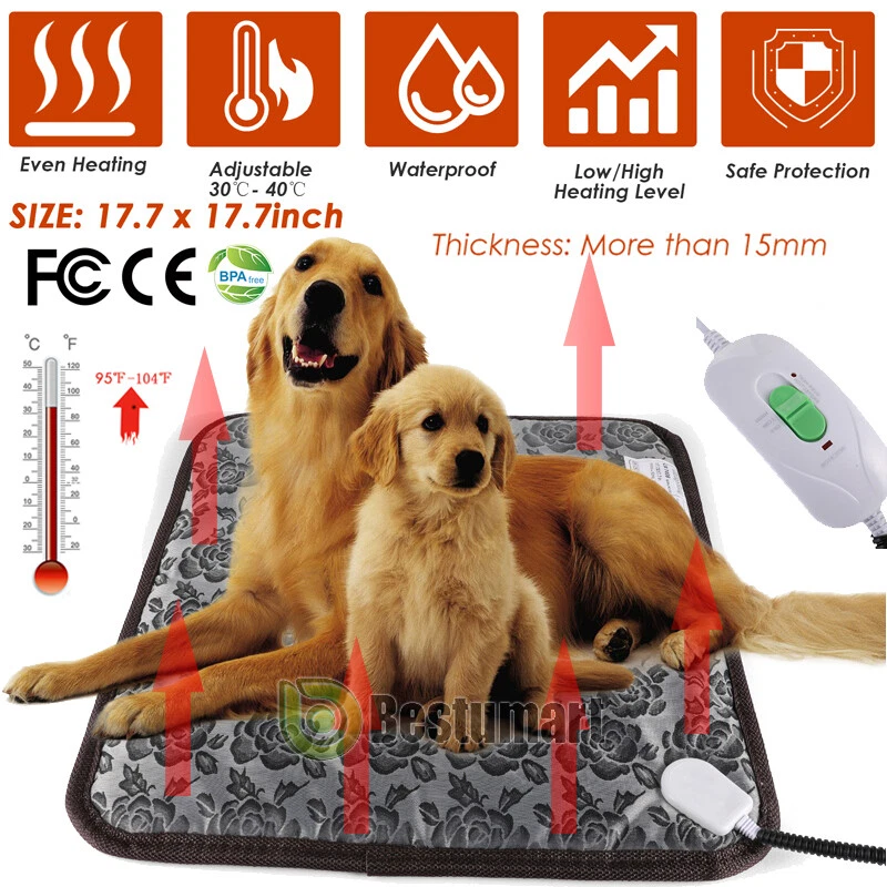 Pet Heating Pad Dog Cat Electric Heated Mat Waterproof Adjustable Temperature BUY WITH CONFIDENCE ↓ ↓ ↓ √ 100% New & Excellent Quality √ Strictly QC, Each set was fully tested before shipping √ Free 1-3 Days Shipping From NJ,USA.Ship within 24 hours. √ Offer delivery with Tracking Number √ Free Return, Seller Pay!! √ Lifetime Warranty Feature: -Adjustable temperature:High up to 104℉/low level -Overheating protection :Can avoid overheating to protect your pets. -Anti- bite cord&anti-electric shock : The cord is made of metal outer layer, avoid your pet biting or chewing it. - Easy to clean&waterproof - Durable material for long- lasting. -Widely use Bed warmer: Suitable for small animals like new born dogs, cats, rabbit, or animals recovering from illness or injury like arthritic pets, pregnant pets. Specification: Fabric: Waterproof Oxford cloth Power supply mode: AC Input voltage: 110v 60Hz Output voltage: 110v 0.2A /20w Rated power: 20W Modes: 2 Size:45*45*1.5cm/17.7*17.7*0.59inch Color:grey Package included: 1*Pet Pad with Steel Cord Payment Shipping Return Policy About Us Contact Us Payment *** We accept Paypal,Visa,Credit Card, e-Check . etc. Shipping Below is the approximate delivery time to different countries (Just estimated) *** 1-3 business days to buyer in USA via Expedited shipping *** 1-5 business days to buyer in USA via USPS Standard Shipping *** 5-12 business days to buyer in CANADA *** 8-15 business days to buyer in EUROPE Country (Depends on Custom) Return Policy *** Free Return, we accept 60 days Money Back or Exchange Guarantee for All Items. About Us Customer Comes First !! Contact Us For any questions or problems, please contact us in the first monent, we will always be here to help you solve the problem.(From Monday to Saturday, not for Holidays).