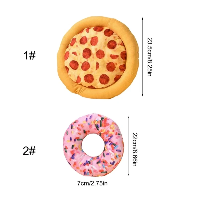 Features: Foster a deep connection with dogs through the dogs toy realistic sound, promoting relation between you and your dogs. Soft material, this dog toy is kind to your dogs teeth while providing entertainment with its stuffing structure and sound device. Suitable for small to dogs and cats, this durablity toy is for dogs who enjoy engaging play. Whether indoor/ outdoor, during training/ indoor, this dog toy offer fun and exercise opportunities for your dogs. Enhances your dogs play with the dogs toy, stimulating their interest, encouraging physical activity, and bringing happiness to dogs. Specifications: Plush Diameter: Pizza: 23.50cm/ 9.25in Doughnut: 22cm/ 8.66in Type: Pizza, Doughnuts Package Includes: 1pc Pet Squeaky Toy note: 1: Please allow 1-2cms errors due to manual measurement, ensure that you not mind before your order. 2: Due to the differences between different monitors, the picture may not reflect the item's actual color.