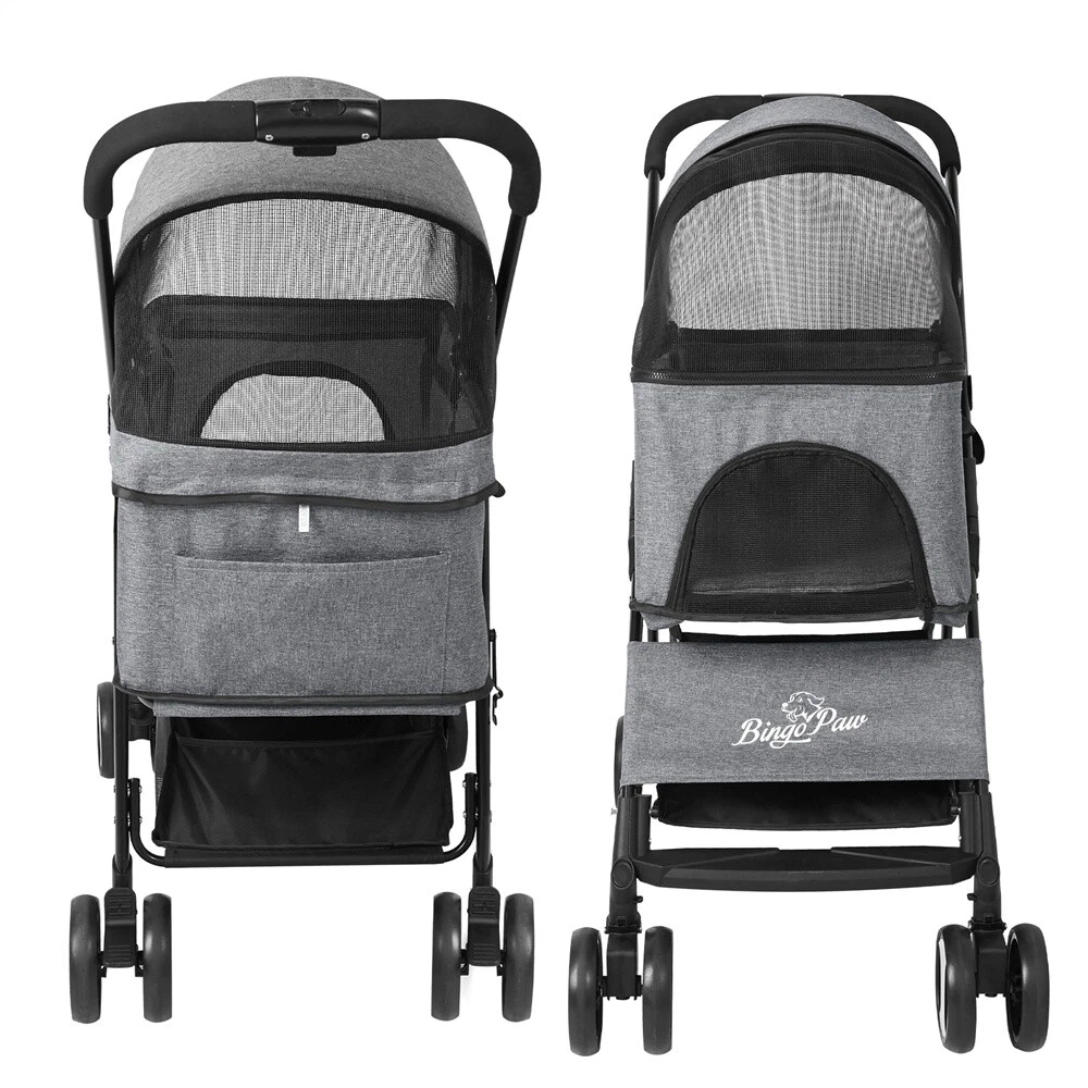 Pet Stroller 4 Wheels Dog Cat Stroller for Small Medium Puppy Dogs Cats Foldable Pet Stroller 4 Wheels Dog Cat Stroller for Small Medium Puppy Dogs Cats Foldable US SELLER FAST SHIPPING! Features: 【Detachable Foldable】Well made luxury pet stroller carrier is detachable, easily detach it from steel frame and can used as car seat. Two straps on both sides for easy carry. Designed one-hand fold mechanism on the handle, easy to push, enable you can fold it flat within minutes compactly to fit in car trunk for travels, with hook on the side to fix it well. Specifications: Material: 600D Linen Fabric + EVA (wheel) + Steel Pipe Color: Grey Net Weight: 7.1 kg Weight Capacity: within 30 kg / 66lbs Product Dimension: L x H 50.5 x 77.8 x 99.5 cm / 19.88 x 30.63 x 39.17 inch Pet Carrier Size: 39.5 x 54 x 62 cm / 15.55 x 21.26 x 24.4 inch Package Size: 75 x 44 x 19.5 cm / 29.5 x 17.3 x 7.7 inch Package Weight: 8.03 kg Package Included: 1 x Cat Stroller 1 x Waterproof Cover 1 x Instruction Guide Payment Delivery details Terms of sales About us Contact us Payment Delivery details We ship orders within 24 hours of payment. Orders are shipped daily Monday - Friday Orders are shipped through USPS and FedEx, normally take 3-6 days to arrive! Terms of sales Pls contact us if there is any problems with your order via ebay message. we will try our best to resolve it to your satisfaction! About us We are a store, mainly run home garden kitchen items, also, we are professional makeup case factory. We work with a good quality OEM supplier and factory. Help you and us save money greatly. Contact us If you have any questions or any helps, pls feel free to contact us via ebay message. We will reply back to you in 24 business hours. Brand BingoPaw Type 4-Wheel Pet Stroller MPN WIS8493HJ893 Features Detachable Carrier, Foldable, with Storage Basket, Shock Absorber, Internal Tether Dog Size S Model Pet Stroller Color Gray
