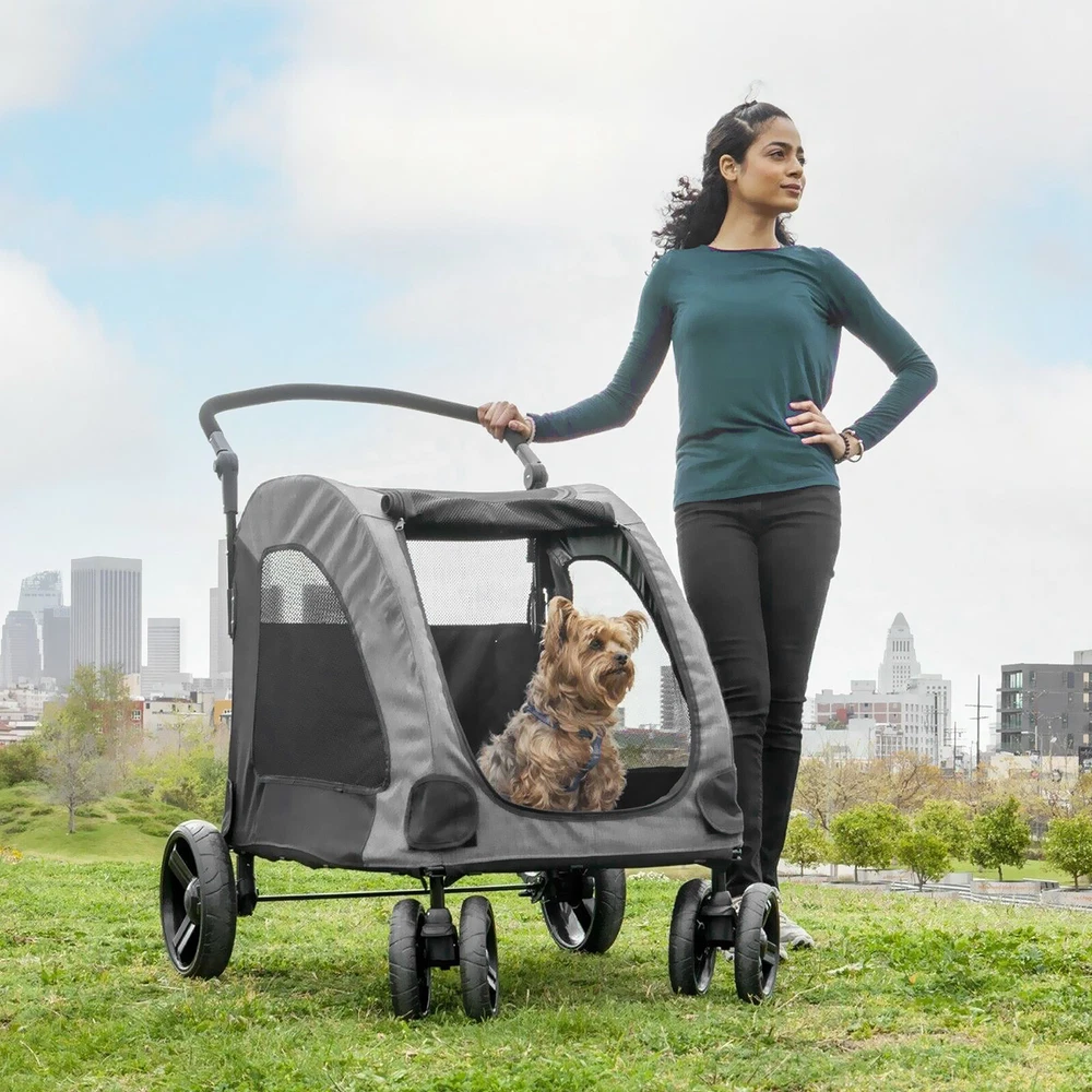 100% American Buy with confidence Fast Delivery Service & Support PICTURE DESCRIPTION 4-Wheel Dog Stroller Pet Jogger Wagon Foldable Waterproof Cart Adjustable Handle About this item: MADE FOR PETS - The Vergo pet stroller provides a safe and comfortable way to travel on walks with your pets. Designed with your pet's needs in mind the large mesh windows provide airflow, spacious interior is waterproof and the rear storage pocket is perfect for toys, water bottles and personal items. This dog strollers are ideal for small, medium or large pets, Perfect for walking or jogging. SUPERIOR DESIGN – Comes with large 12” back wheels, a locking system, and 360° swivel 8” front double locking wheels that allow you to maneuver through a variety of different terrains like grass and pavement easily. The large wheels absorb shocks and vibration and provide a smooth ride for your pets. PERFECT FIT - Designed to fit small, medium or large pets, our dog stroller provides a large 31” L x 21” W x 24”H waterproof interior. The entrance is 12" off the ground making it easy for pets to jump into the 22" x 16" opening. The adjustable padded handle of the stroller can be set to a height between 31” to 41” from the ground. Maximum weight capacity 150 Lb Exterior dimensions: 37" L x 30" W x 37" H. CONVENIENT – This stroller for dogs is easy to assemble and is ready in minutes. Simply attach the wheels, unfold and place the adjustable handle and you are ready to walk or jog in style. At only 25 lbs the pet wagon is lightweight and portable. When you are done simply remove the handle, fold and store. Folded dimensions with wheels: 37" x 30" x 13". Folded dimensions Without wheels: 37" x 21" x 5". STRONG AND SECURE – Vergo pet stroller frame is made from strong carbon steel while the outside cover is made from a high density oxford fabric. Large side mesh windows and peek-a-boo top ensure that your pet has adequate airflow. Our dog wagon interior is lined with a waterproof PVC cover and includes a safety leash to secure your pet inside the wagon. specifications Parameter Material: PVC waterproof interior & Oxford polyester exterior & Carbon steel frame Fabric Type: Oxford Fabric with Large Mesh Windows Color: Gray Product Dimensions: 37"L x 30"W x 37"H Recom-mended Pet Sizes: 21"W x 21"H x 33"L Item Weight: 25 Pounds Maximum weight recommendation: 150 Pounds Warranty : Lifetime IN THE BOX 1 x Pet Stroller feature 100% Brand new and high quality. Premium quality durable product Oxford Fabric with Large Mesh Windows Light weight & portable: Set up is a breeze! Simply attach the wheels, unfold and place the adjustable handle. At only 25 Lbs. the wagon is light weight and portable, when you are done simply fold and store until your next walk. Adjustable Handle: The ergonomically designed padded adjustable handle lets you choose the perfect height for you to use the pet wagon. Handle can be adjusted from 31" - 42.9" with the push of a button. Spacious Interior: The interior of the pet wagon is lined with a PVC waterproof cover and a safety strap to help keep your pet safe inside the wagon. The exterior is made from a high density oxford polyester fabric. Superior Mobility: The Pet wagon was designed with large 12" locking back wheels and 360° eight inch double wheels which allow you to jog or walk on a variety of terrains. MORE INFORMATION SHIPPING 1. We have Two warehouses located in CA, and NJ, and the item will be shipped from one of them, and only to eBay ADDRESS. Package handling only takes 1 business day at our warehouse, so please make sure entering correct payment and shipping information before checking out. Once your payment is completed, pls inform us by Email or leave ebay note if the changes are needed before we send the product. 2. It is beyond our ability to change the address after we ship your item. 3. Orders placed at weekend will be shipped within 2 days. 4. USPS: 3-9 business days. | UPS: 2-6 business days. | FedEx: 2-6 business days. 5. We only ship to the 48 states, and we do not ship to FPO or APO addresses. RETURN We accept returns. Please contact our customer service team immediately if: 1.You changed your mind and wish to request a return 2.Your product was damaged during transit All returns must be directed through Customer Service. Please do not return or post items before obtaining instructions from us. If you do, there is a risk that your returned item may not be identifiable and accepted. Applicable freight fees and a 10% re-stocking fee will be deducted from your refund in cases where you changed your mind about your purchase and wish to return the product. This also applies to orders cancelled while in transit. We ONLY accept returns with original package. Please make sure that item has NO man-made sabotage. Used items will not be accepted for return. We will require a picture of the damaged part for verification. The buyer will be liable for the shipping costs associated with warranty claim. ABOUT US ABOUT US We are the leading professional eBay Megastore headquartered in America. We seeks to sell the greatest value products on the market. These items should be of an acceptable quality, fit for purpose, and matching their description. On the odd occasion when things don't go to plan, you can be rest assured that our Customer Support team is here to help! Check out our warranty section for all terms and conditions. We have a highly experienced engineering and technical team who specialise in researching and developing all our products.We benchmark our products against high standards and that’s why our customers keep coming back. Even better, we offer a huge range of spare parts and service support after you purchase your product. So when you shop online with us you can buy with peace of mind. Payment We accept Paypal payment only. Payment should be completed within 4 (Four) days of auction closing. Or unpaid dispute will be filed for closing auction. WARRANTY For y