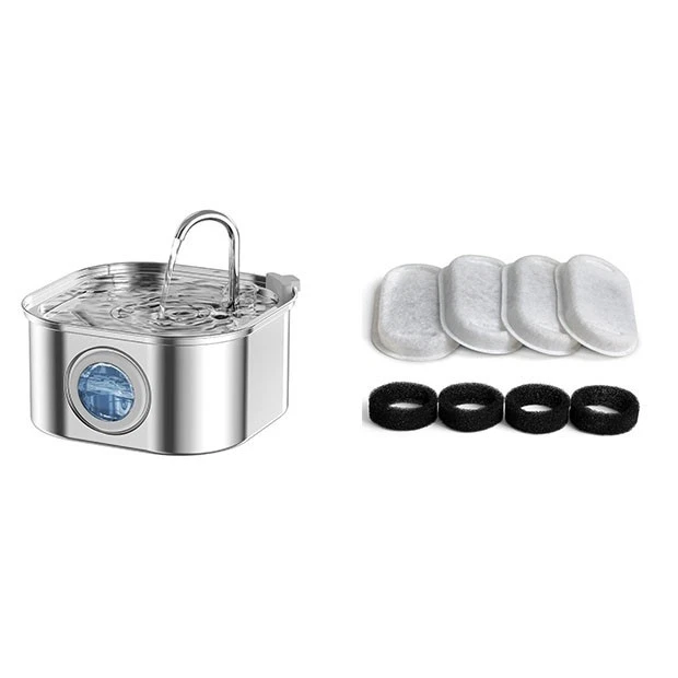 About this item: Visible Water Level Window:Stainless steel cat waterer fountain with high and low water level markers, designed with a transparent round window to view the water level of the cat water dispenser without opening it, allowing pet owners to easily monitor the water level inside and replenish it in a timely manner, the pump comes with an LED light, the LED pump emits a blue light to make it more attractive to cats and encourage them to drink more water 304 Stainless Steel & BPA Free:The water fountain for cats inside is made of 100% food grade 304 stainless steel, which is healthy and sanitary, free of BPA, safe and easy to clean. The cat water fountain stainless steel can be used for many years, and the stainless steel material makes it less likely to have any scratches or corrosion. It is also safe to put into the dishwasher. It can withstand high temperature cleaning to ensure your pet's health 108oz/ 3.2L Large Capacity:The cat water dispenser has a drinking capacity of 3.2 L/108 oz, which can provide 14 days of drinking water for cats and 9 days for dogs. It doesn't need to be replenished frequently, so when you travel, you don't have to worry about your pet's drinking water. Dynamic water flow helps attract pets to drink. The cat fountain water bowl is designed with faucet and spring surge mode, which is consistent with the habit of cats and dogs like to drink under the faucet Quiet Water Pump:This stainless steel water bowl for cats uses an ultra quiet water pump, and the working frequency is kept below 30db, so that you can only hear the sound of water flow. Even if it runs at night, it will not affect your sleep. You won't worry about your pet being frightened or noise disturbing its daily habits. The perfect solution is provided for those who want to keep their pets hydrated but do not like to hear the high voice at night Dual Filter System:The pet water fountain for cats is equipped with a dual filtration system of activated carbon filter and replaceable round filter sponge. The external foam filter of the pump can filter impurities and catch hair, keep the inside of the bowl clean, and avoid any accumulation that may attract flies or mosquitoes. The activated carbon filter can remove the odor, soften the water and improve the taste. The dog water fountain provides purer and fresher water for your lovely pets Easy to Disassemble & Clean:Cat drinking fountains can be assembled and disassembled in just a few minutes, making it easy to clean and replace. Also, it is easy to clean, just put it in the dishwasher (pump and filter not included). For your pet's health, we recommend changing the filter and cleaning the pump and fountain every 2-3 weeks. Specification: Color;Silver Material:stainless steel Invisible Capacity:3.2 Liters Packing list: 1* Water fountain 1* water pump 1* filter element 1* filter cotton 1* Discharge head 1* adapter Payment Payments are accepted through Paypal only. It's a quick, safe and free way to pay for your online purchases.Payments are instant, so we can prepare your order for shipping as soon as you have paid. Shipping If you have not received your item after estimated delivered days, please do not hurry to open case to us. We would recheck the shipping status for you and decide refund or something in your request. We do COMBINED SHIPMENT on any multiple purchases. We are pleased to grant a 10% shipping cost discount on purchases with more than one (1) item. We are also happy to offer personalized discounts for larger order. Returns All returned products must be in their original packaging with all included accessories intact,and must be accompanied by a copy of the Return Item Authorization (RMA) issued by us,and sent to the address indicated in the Return Item Authorization.We shall notify you once we have received and processed your returned item. We typically process your returned items for evaluation & investigation within seven (7) days of receiving them.If it meets our warranty requirements,a refund will be given or a brand new replacement unit will be sent to you at our cost. Taxes & Custom Duties. The shipping cost does not cover any local taxes, import duties, customs clearance,or any other import-related costs levied by your government.Please check with your local customs office for more information. Contact US Any questions, please feel free to contact with us. We will solve the problem for you asap on Monday when we back to work. If you are satisfied with the product or our service, we really appreciate that we could have your positive comment, it would be driving force for us.