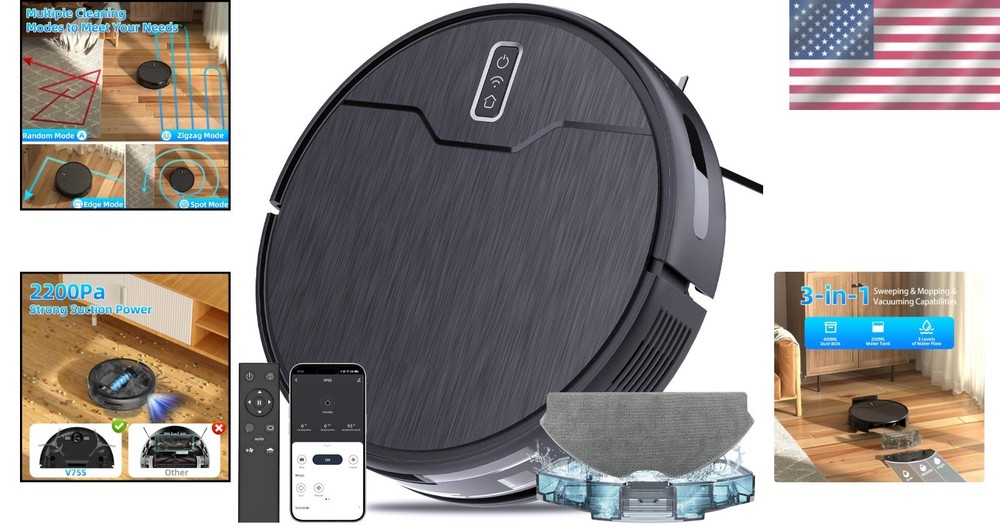 Pet-Friendly Robot Vacuum & Mop with Powerful Suction, HEPA Filtration ‹ › ‹ › ‹ › ‹ › ‹ › ‹ › ‹ › ‹ › ‹ › Pet-Friendly Robot Vacuum & Mop Designed with pet owners in mind, this state-of-the-art vacuum and mop combo combines powerful suction and advanced cleaning technology to deliver a spotless home effortlessly. Features: 3-in-1 Functionality: Enjoy a seamless cleaning experience with 2200Pa suction power and a 250ml water tank, suitable for all hard surfaces including laminate, tile, and hardwood floors. Advanced Smart Obstacle Avoidance: Features a sleek wire drawing design and state-of-the-art sensors to intelligently navigate around obstacles, stairs, and walls while reaching those hard-to-clean corners. Long Runtime & Self-Charging: With a powerful 4400mAh battery, this robot vacuum provides over 120 minutes of continuous use, automatically returning to its dock when the cleaning is done or the battery is low. 6 Efficient Cleaning Modes: Easily switch between modes (Random/Smart/Edge/Mop/Spot/Manual) to cater to your specific cleaning needs. Smart App & Remote Control: Enjoy the convenience of setting cleaning schedules and modes through a user-friendly Smart App, compatible with Alexa and Google Assistant for voice control. Dimensions: Compact design fits into any home environment. Product dimensions: 16.06"L x 13.15"W x 2.99"H What You Get: V75S Robot Vacuum Remote Control Charging Dock & Power Adapter 250ml Water Tank (with washable mop cloth) 400ml Dustbin (with high-efficiency filter) 2 Side Brushes User Manual & Network Guide Why Choose Our Robot Vacuum & Mop? This innovative cleaning solution is not just about efficiency, it's about enhancing your life. Keep your home free from dust, dirt, and pet hair effortlessly. With powerful suction, smart technology, and an intuitive control system, this robot vacuum is the ultimate companion for a pristine home. Experience the luxury of automation without sacrificing quality; order your Pet-Friendly Robot Vacuum & Mop today and redefine your cleaning routine! Shipping Free & Fast Shipping - We offer free shipping to most of the USA with a normal delivery time of 3-7 days. However, due to the current situation, additional delivery time (up to 3 weeks) may be required for some items. Alternative Carriers - We may use alternative carriers (e.g. USPS, FedEx, UPS, etc.) to ensure your package arrives safely and on time. Due to the use of multiple carriers, we are unable to provide a tracking number automatically. Handling Time - Orders are processed and shipped within 1-2 business days of receiving cleared payment. Shipping Restrictions - Shipping to Alaska, Hawaii, Puerto Rico, Guam, and other US territories may incur shipping charges or delivery restrictions. Please contact us before ordering, or your order can be refunded/cancelled. State Restrictions - There may be restrictions based on your state of purchase. For example, certain items may not be shipped to California due to state regulations. Contact for Tracking Updates - If you require tracking updates or have any concerns about the delivery of your order, please feel free to contact us, and we will be happy to assist you. Return 30-Day Hassle-Free Returns - We want you to be completely satisfied with your purchase. If you are not, you can return the item within 30 days of receiving it for a full refund or exchange. Easy Return Process - To start a return, simply contact us and we will provide you with a prepaid return shipping label and detailed instructions. Restocking Fee - There are no restocking fees for returns. However, the buyer is responsible for return shipping costs if the return is not due to a seller's error. Refund Processing Time - Refunds will be processed within 5 business days of receiving the returned item in its condition. Payment We accept all major credit cards, PayPal, and Apple Pay for your convenience. Your payment information is secure and encrypted to ensure a safe and seamless transaction. Please complete your payment within 3 days of purchase to avoid any delays in shipping. Feedback Your feedback is extremely important to us. We strive to provide the best products and customer service possible. If you are satisfied with your purchase, please take a moment to leave us a positive review. If you have any concerns or issues with your order, please contact us before leaving negative feedback. We are committed to resolving any problems and ensuring your satisfaction. Contact Us If you have any questions or concerns, please feel free to out to our customer support team. You can contact us through the eBay messaging system. We are available Monday to Friday, 9:00 am to 5:00 pm EST, and we will do our best to respond to your inquiry within 24 hours. Buy it now and enjoy a pleasant shopping experience! Type: Robotic Color: Grey-1 Item Weight: 7 Pounds