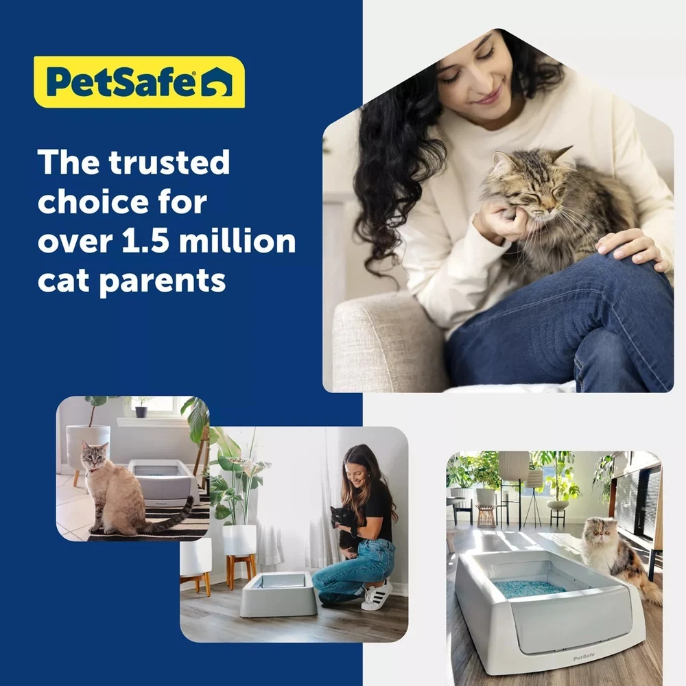 PetSafe ScoopFree Crystal Classic Automatic Self-Cleaning Cat Litter Box System DESCRIPTION Strike scooping the litter box off your to-do list. With the ScoopFree Crystal Classic Self-Cleaning Litter Box, there's no scooping, cleaning or refilling your cat's litter box for weeks. This litter box uses crystal litter which provides 5 times better odor control than traditional clumping litter. Crystal litter absorbs urine and dehydrates solid waste. This low-tracking litter also helps keep your floors clean because it is 99% dust free and doesn't stick to your cat's paws. Safety sensors make sure that the scooping cycle only occurs when your cat is out of the box. The disposable trays have a plastic lining to help protect against leaking, and each tray comes with a lid for quick and easy disposal--simply remove the tray and throw it away. Features: Let the Box Do the Work - No scooping, cleaning or refilling your cat's litter box for weeks Unbeatable Odor Control - Crystal litter removes smell by absorbing urine and dehydrating solid waste Includes one disposable ScoopFree Crystal litter tray with crystal litter No More Messy Floors - Low-tracking crystals are 99% dust free and don't stick to your cat's paws Leak Protection - Disposable trays have a plastic lining to help protect against leaking and keep your floors clean Easy Cleanup - Simply remove the tray and throw it away; each tray includes a lid for quick disposal Includes: Crystal Litter, Disposable Litter Tray, Operation Guide Intended Pet: Cat