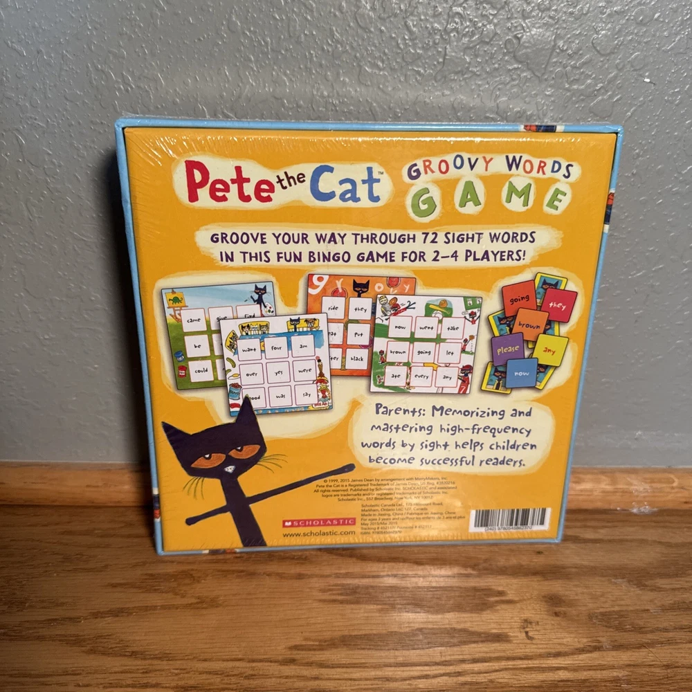 The "Pete The Cat Groovy Words Game" by Scholastic is a word game designed for 2 or more players. Released in 2015, it focuses on sight word learning and provides an educational experience. The game appeals to both boys and girls, offering a fun and engaging way to improve vocabulary skills.