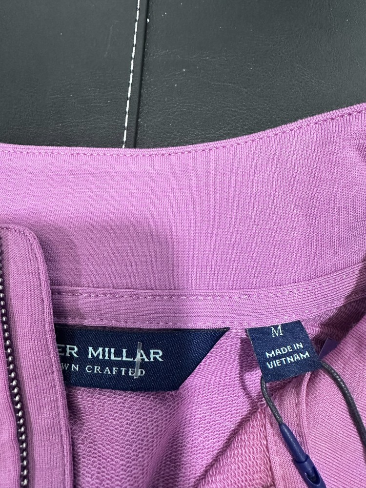 Description: Peter Millar Crown Crafted Men's (Size M) Pink Orchid Long Sleeve 1/4 Zip Merino Wool Sweater. (See pictures) Brand: Peter Millar Gender: Men Size: M Color: Pink Orchid Pattern : Solid Material: 90% merino wool,8% nylon,2% spandex Condition: New with tags MSRP: $200 Buy It Now Price: $79.99 Shipping: plus $5.99 for first class package shipping Note: Picture Accuracy is about 90%. Slight variance in color may result, due to lighting and camera default settings.
